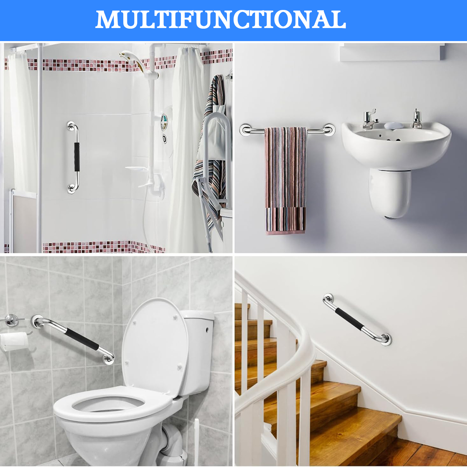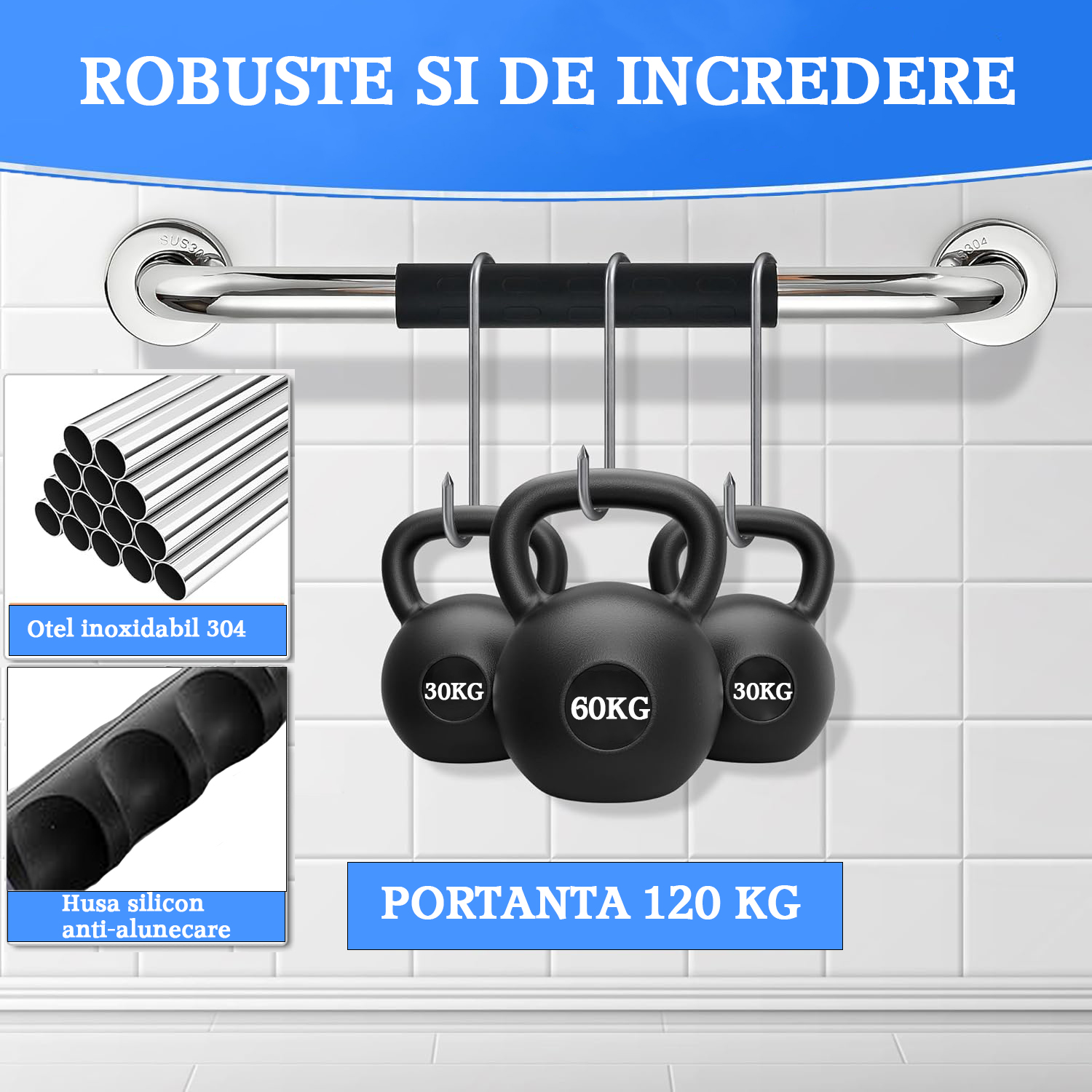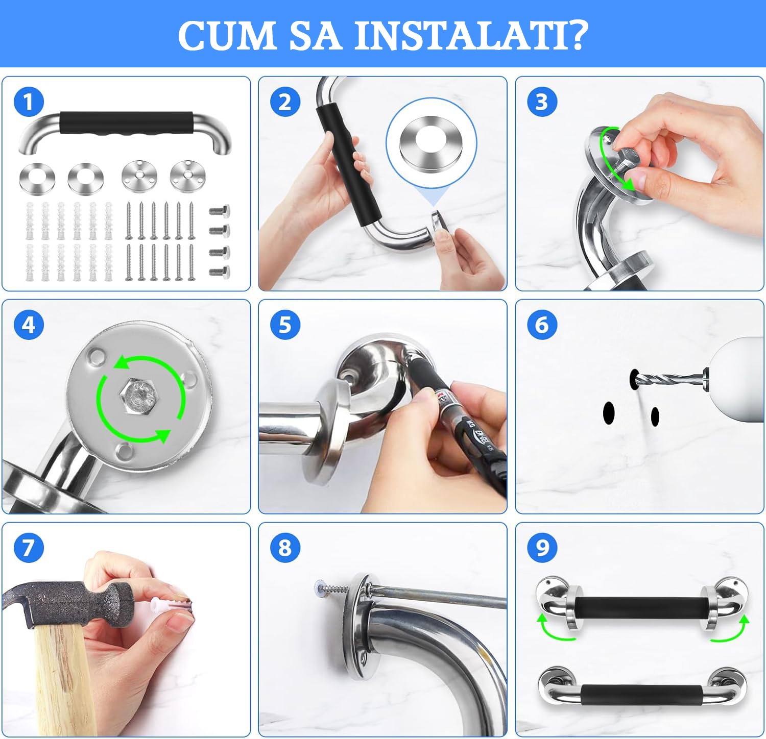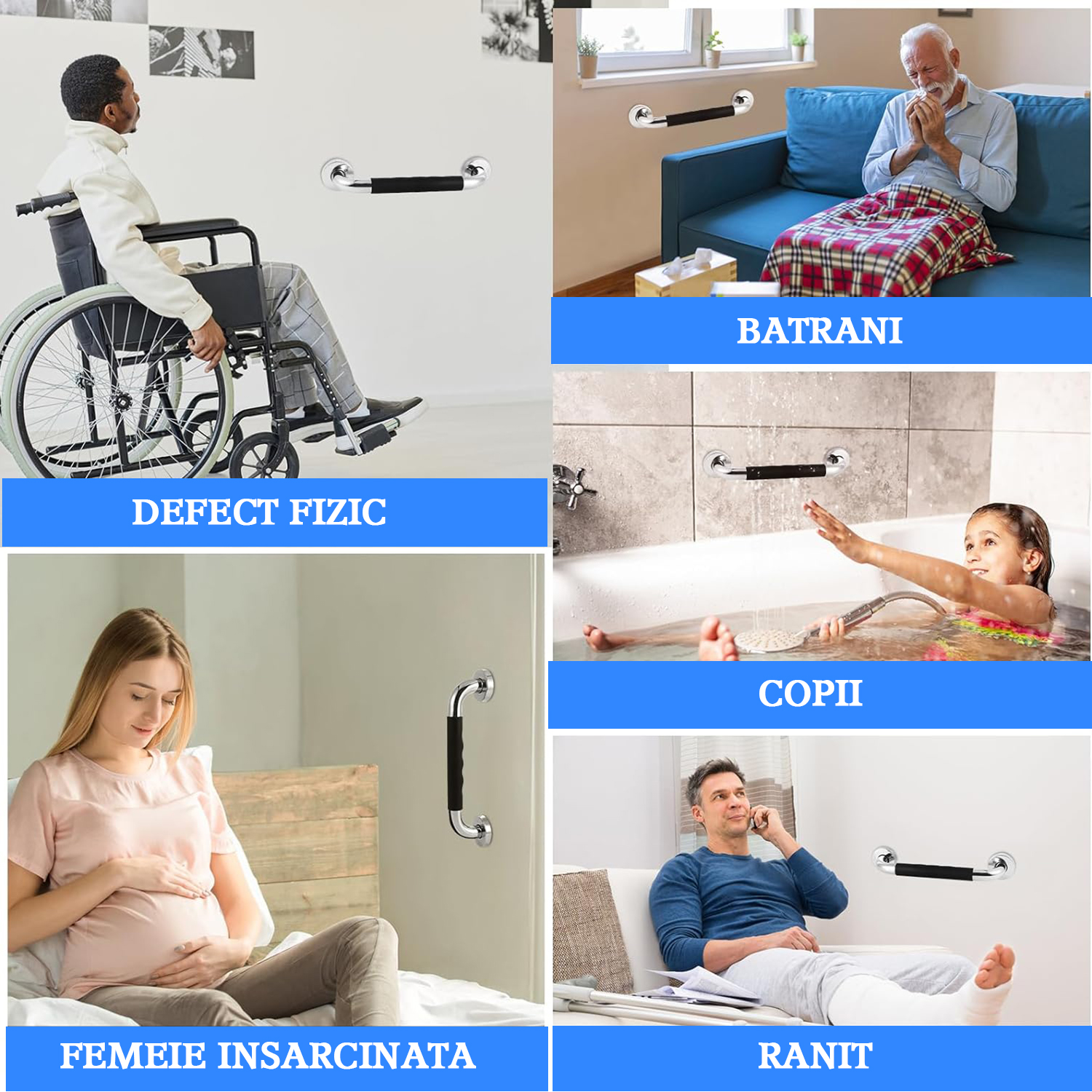 | 【Maner cada anti-alunecare】 In comparatie cu balustradele traditionale de baie, Bare de sprijin baie folosesc manere anti-alunecare din silicon moale, Negru, Care se pot potrivi perfect degetelor tale, Ofera un confort mai mare si sporesc efectul anti-alunecare pentru familia ta, Daca mainile tale sunt , Daca spuma devine alunecoasa sau umeda, Suprafata aspra a balustradei baii va avea si proprietati puternice anti-alunecare, Care va pot oferi un sprijin de incredere si va pot preveni caderea.