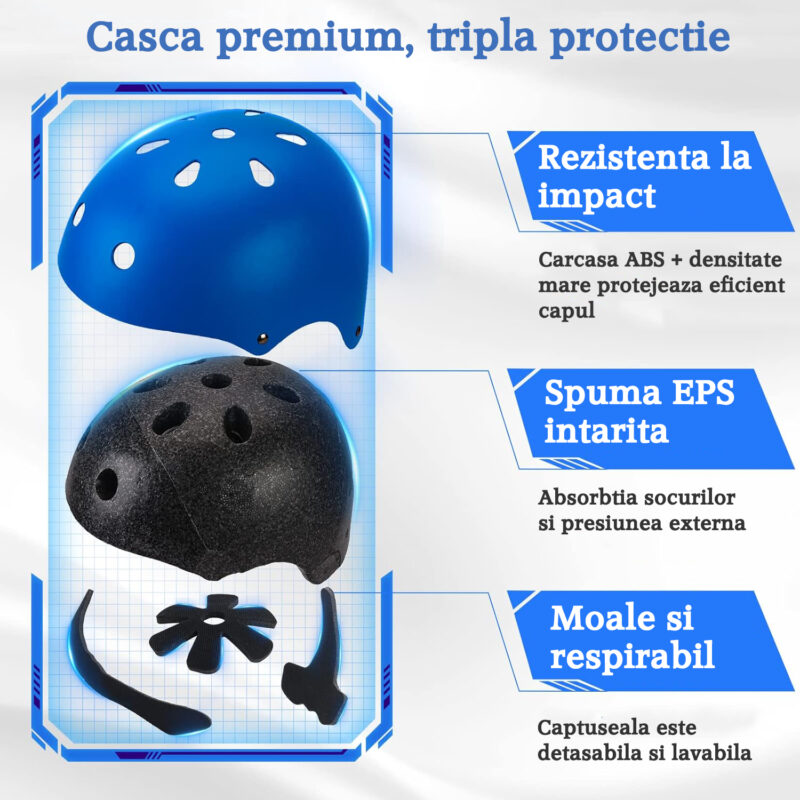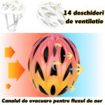 Materiale sigure si design protector※Casca protectie ※Casca protectie este echipata cu 14 orificii de ventilatie pentru a promova circulatia aerului si a preveni senzatia de infundare, mentinand capul copilului racoros in timpul exercitiilor fizice. |