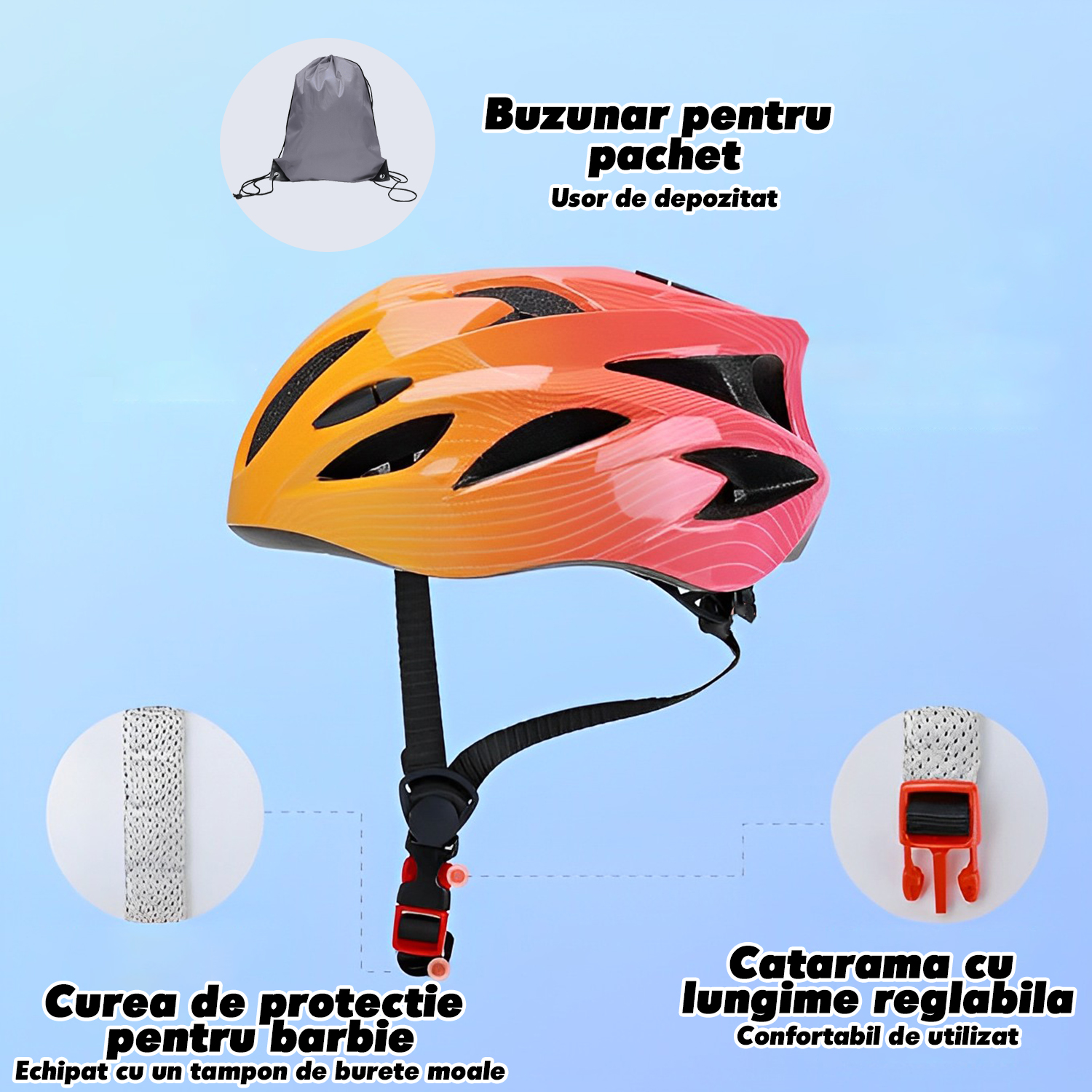 Casca Protectie Bicicleta, 52-58cm, pentru Copii 3-8 Ani, cu Sac de Depozitare, Ventilata, Securitate, pentru Bicicleta/Skateboard