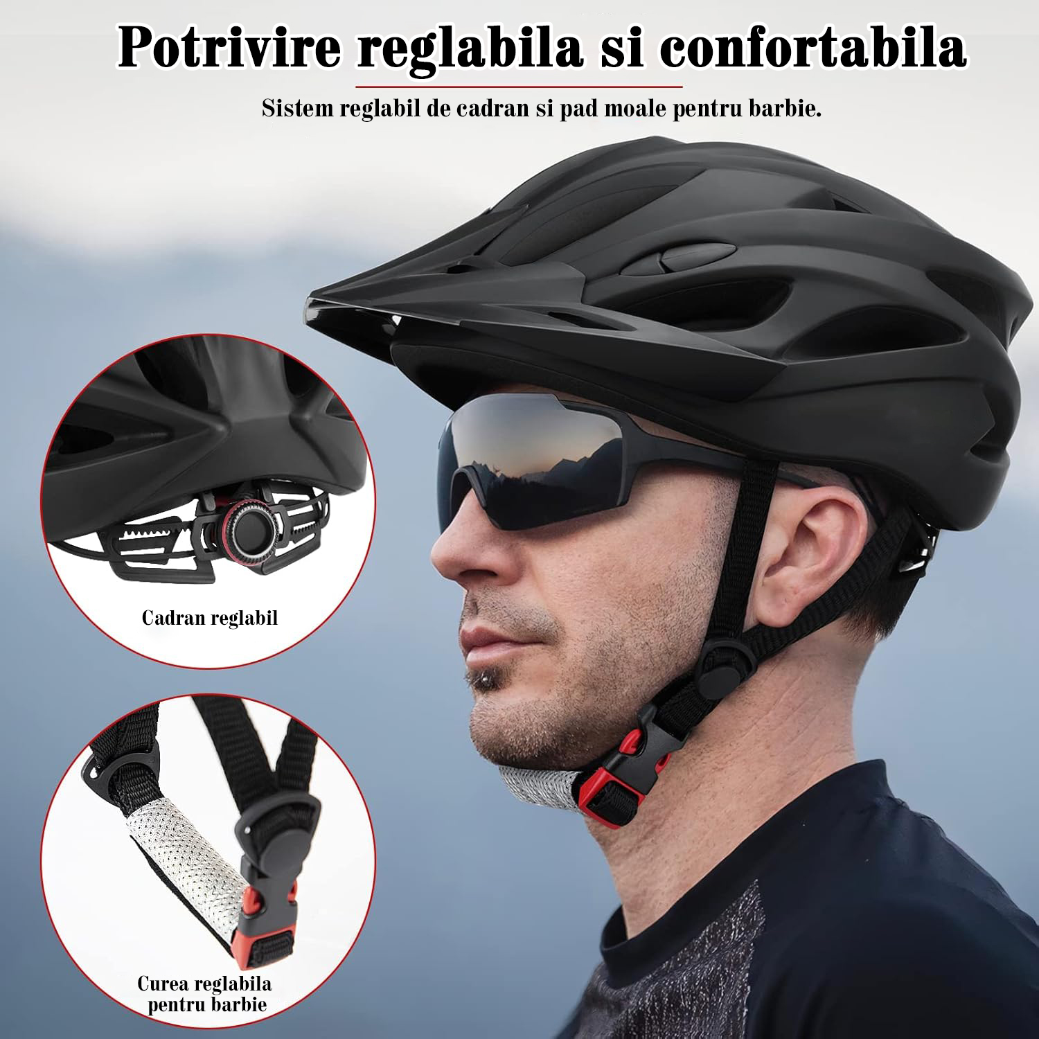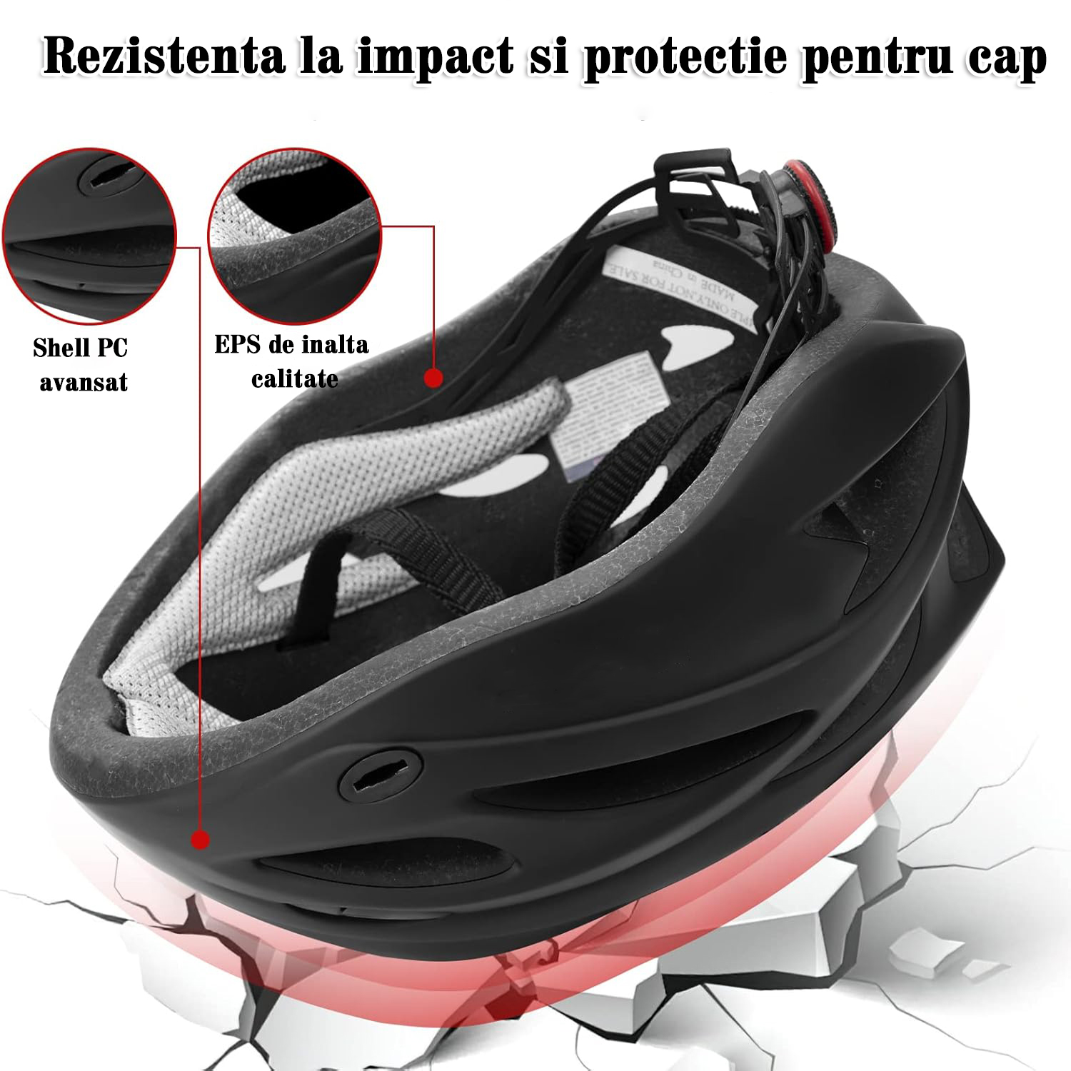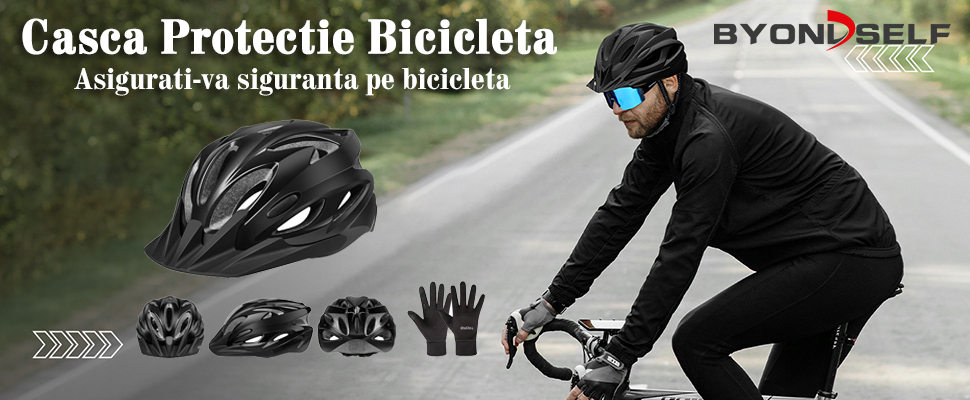 Casca Protectie Bicicleta, BYONDSELF®, 57-62cm, cu Manusi, Ventilata, cu Reglabila, 14 an+, pentru Bicicleta, Negru