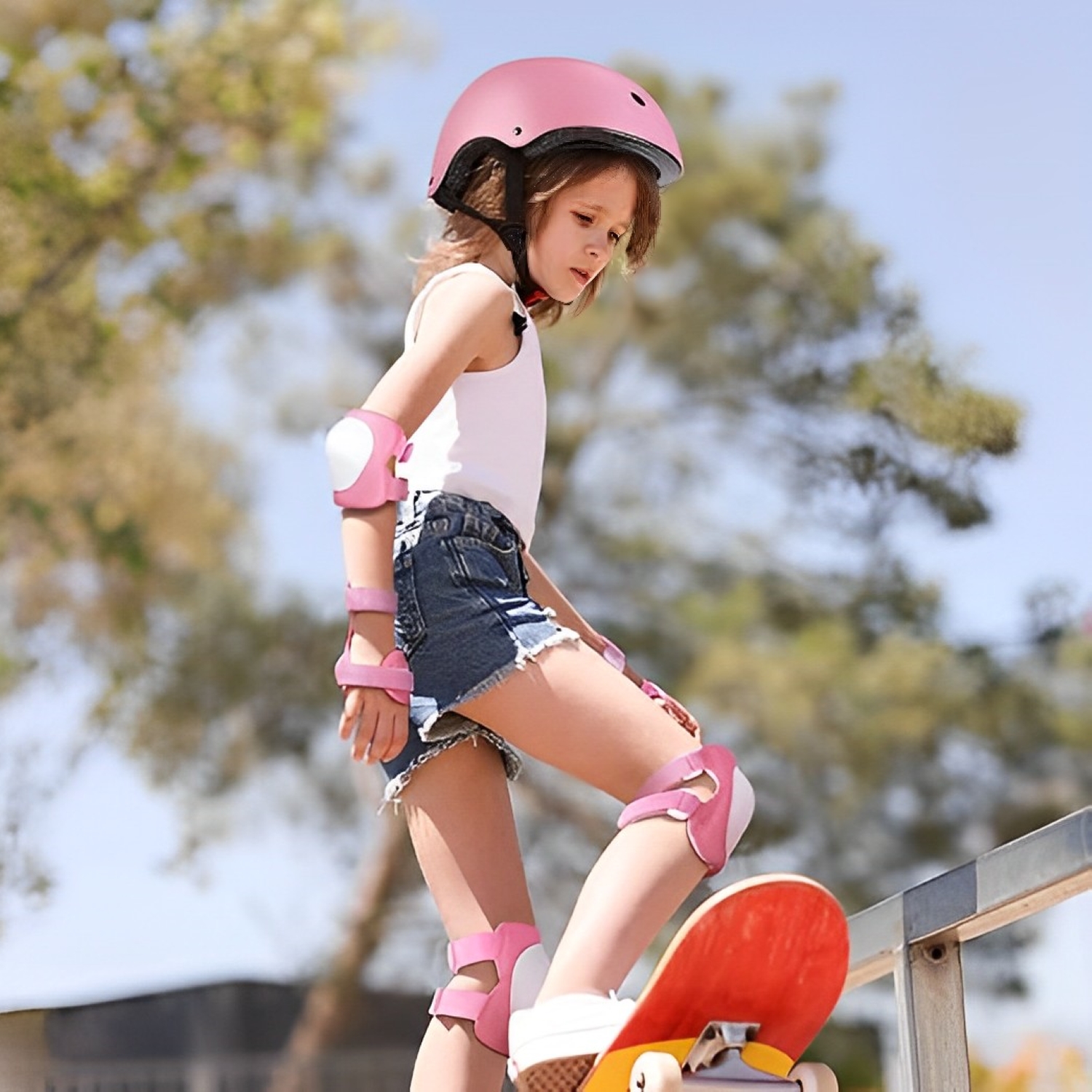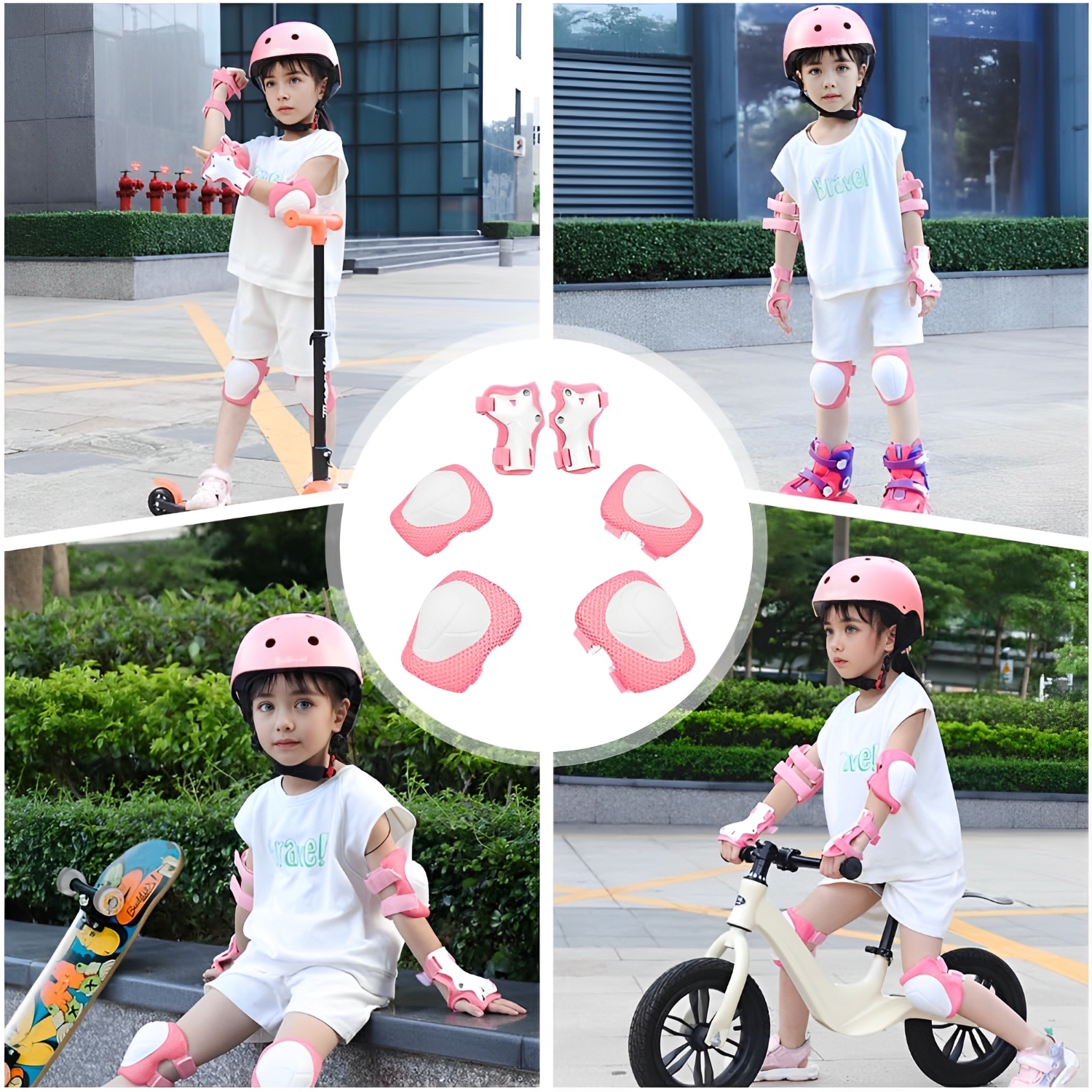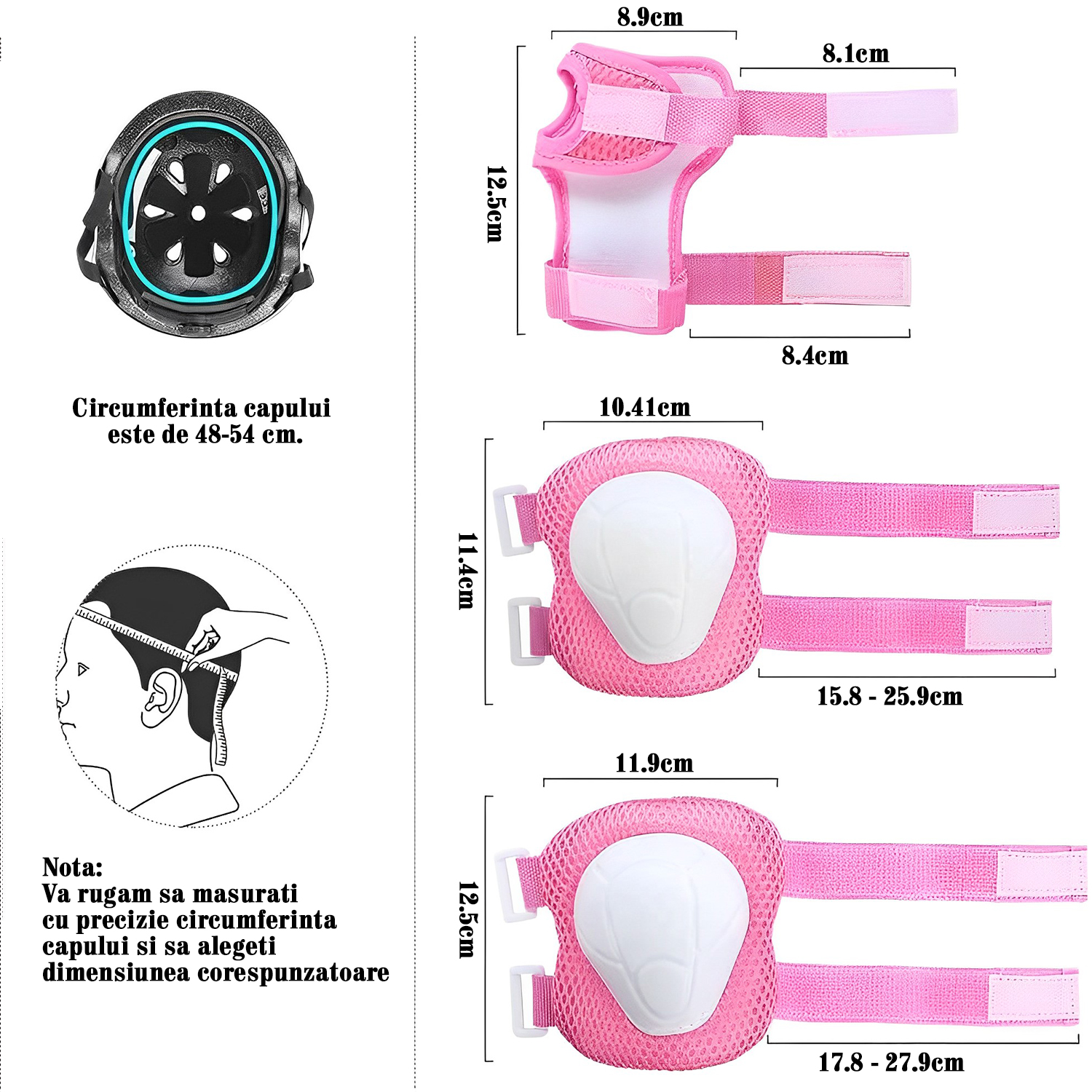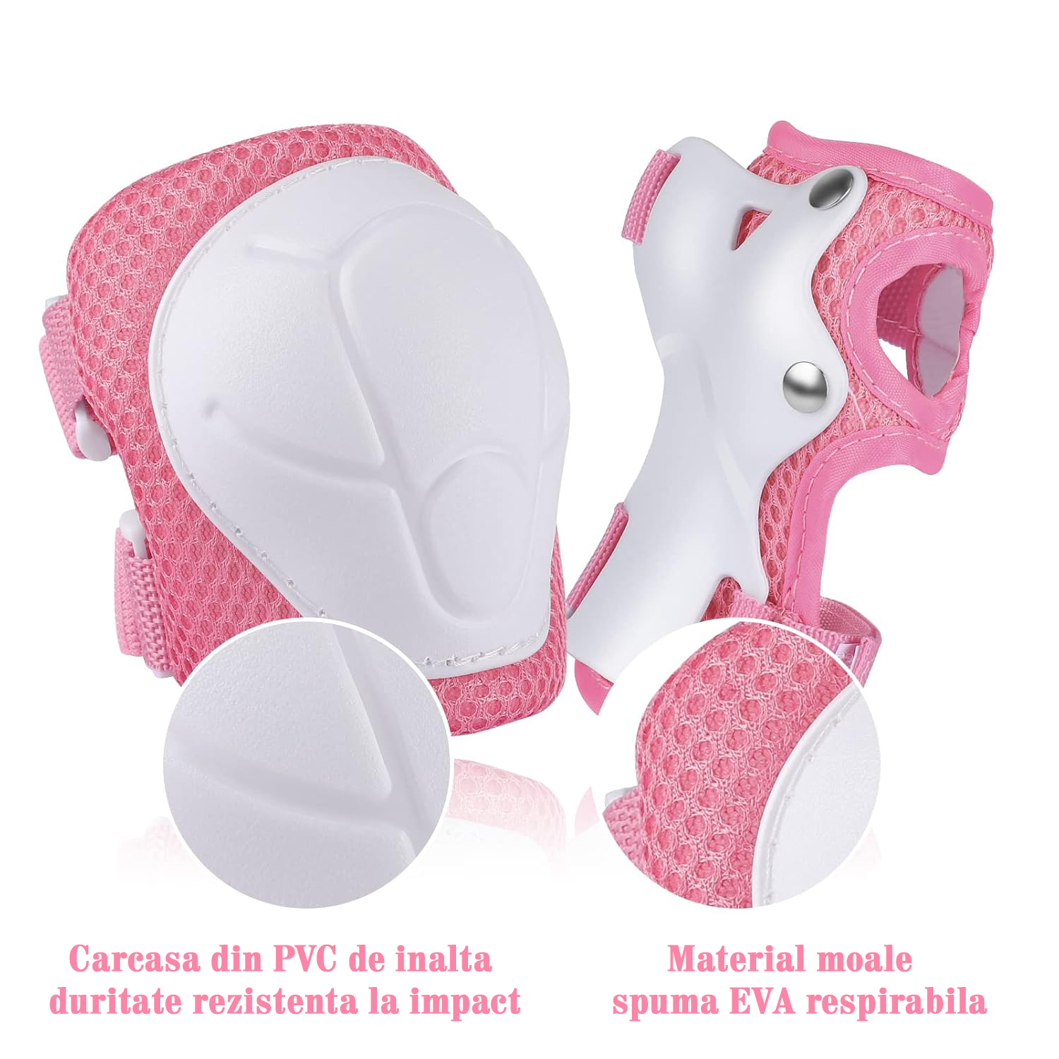 | Complet echipat: Set protectie pentru copii include o casca, o pereche de genunchi, o pereche de coturi si o pereche de perne de incheietura, toate proiectate cu materiale usoare si structuri robuste pentru a oferi protectie cuprinzatoare copiilor.