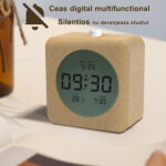 | 【Ceas patrat din lemn, silentios, cu alarma si iluminare de fundal】