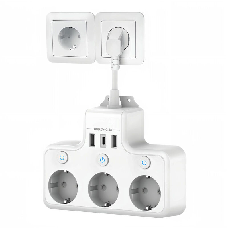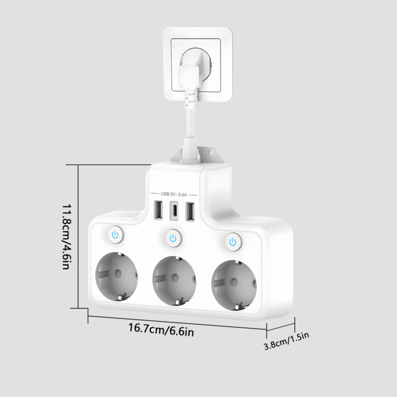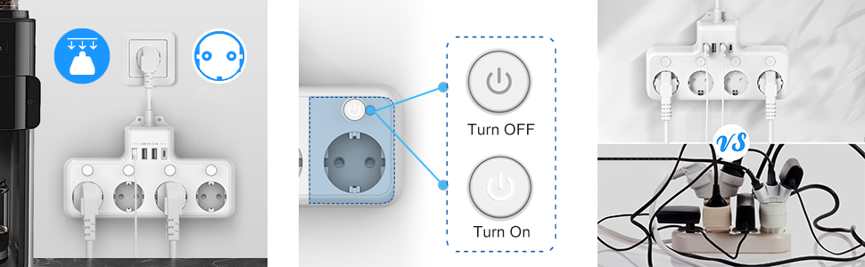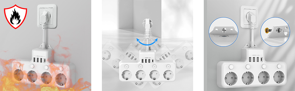【Instalare usoara】 Priza multipla are propriul orificiu de montare pe perete, care poate fi instalat cu usurinta pe perete, economisind spatiu si facandu-l convenabil de utilizat.