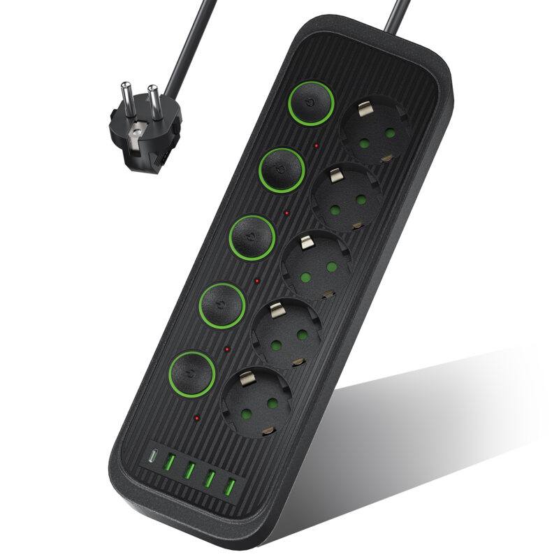 【Comutator independent】 Prelungitor este echipata cu intrerupatoare independente. Cand echipamentul nu este in uz, trebuie doar sa opriti intrerupatorul corespunzator pentru a evita deconectarea si reconectarea sursei de alimentare, asigurand siguranta utilizarii energiei electrice, asigurand in acelasi timp utilizarea altor echipamente.