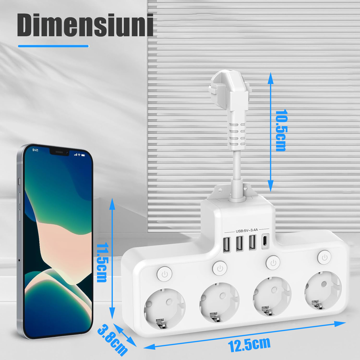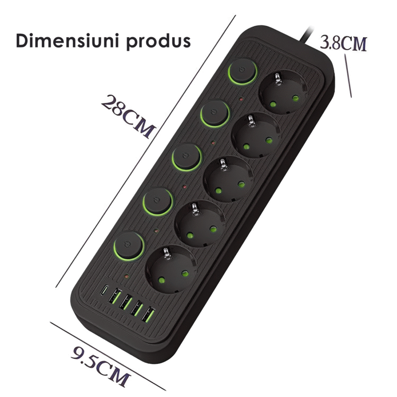 【Compact si portabil】 Dimensiunea benzii de priza este de 21,7 * 11,8 * 3,8, care este usor de transportat atunci cand calatoriti si incarcati toate dispozitivele oricand si oriunde.