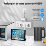 【Design multifunctional】 Acest priza multipla este echipat cu 4 prize universale UE si 4 USB. 4 prize sunt evaluate la 4000W, satisface nevoile multor aparate de uz casnic.