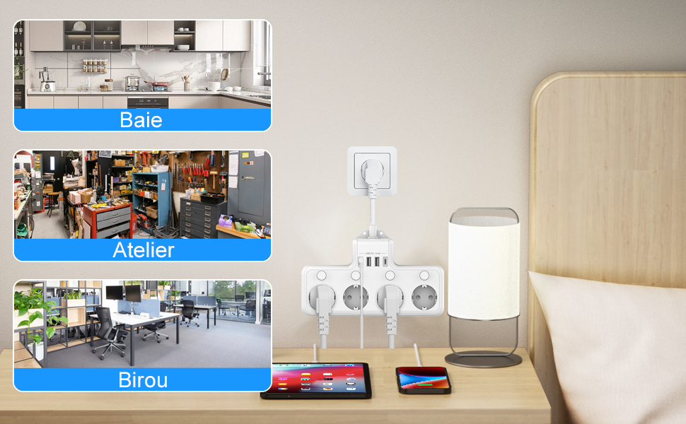 【Gama larga de utilizari】 Designul sigur si eficient poate fi aplicat in diferite locuri, cum ar fi case, hoteluri, birouri etc., satisfacand nevoile unei varietati de aparate electrice si mai multor persoane.