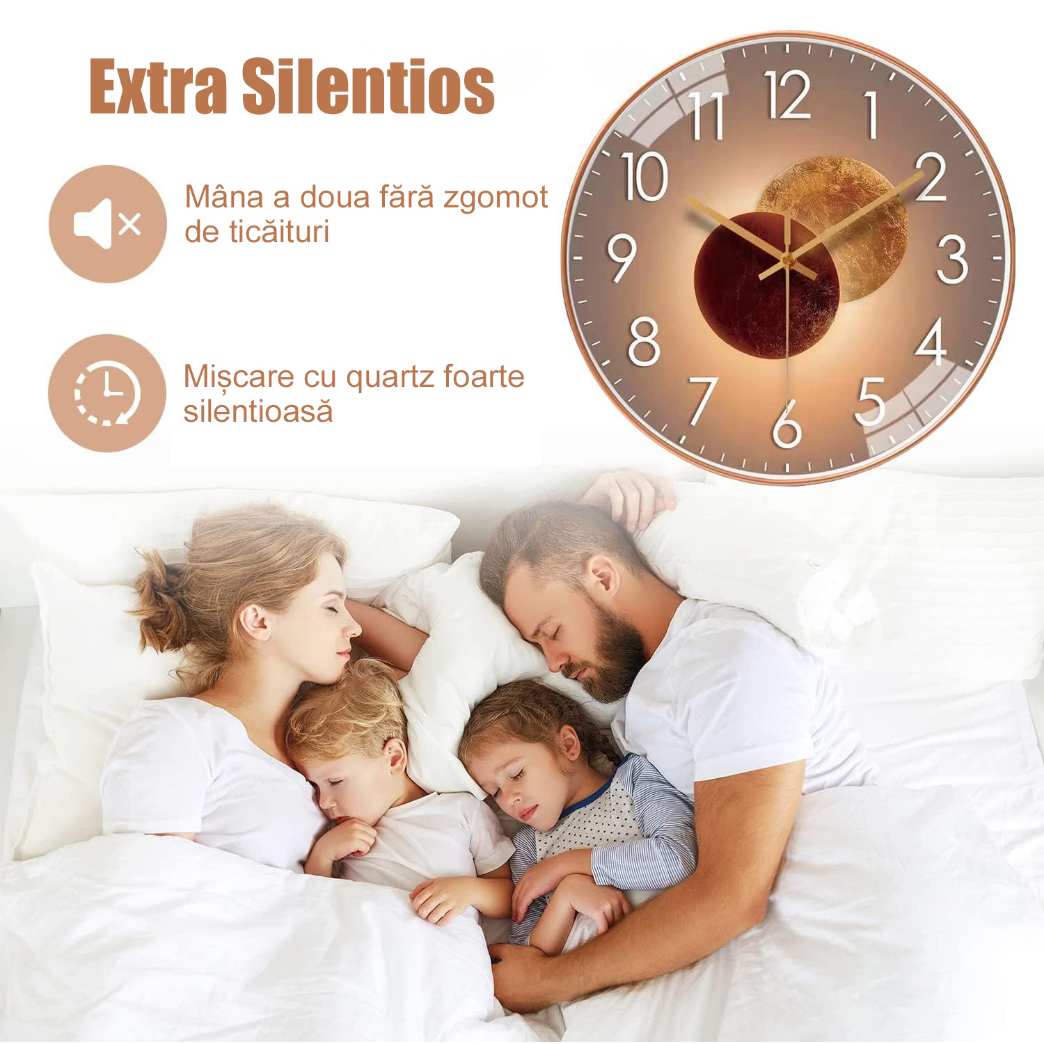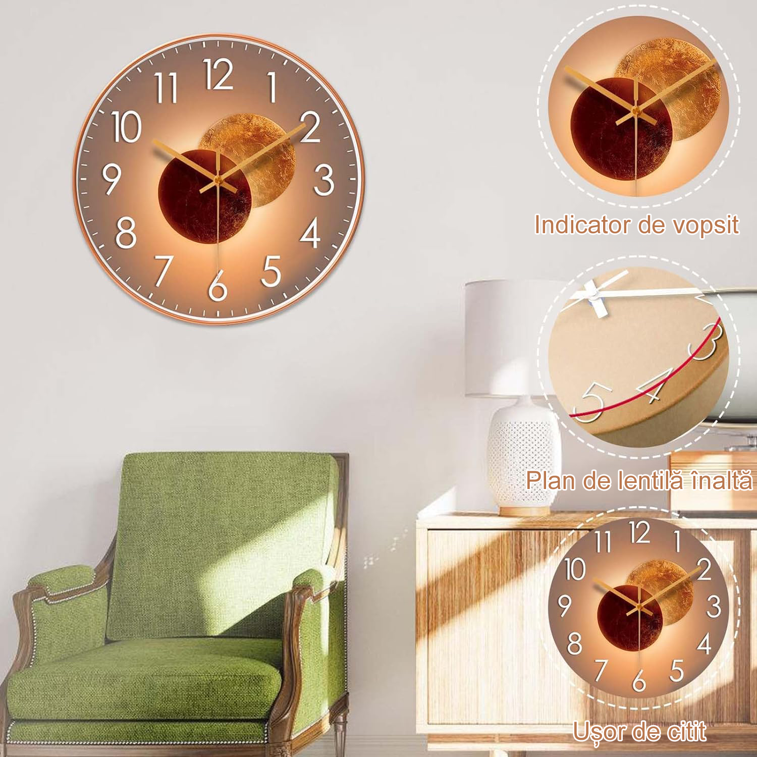 【Decor de ultima generatie】 Ceas decorativ linistit este modern si simplu si se potriveste in orice decor al camerei tale. Este un decor ideal pentru casa, magazin, scoala si birou, de asemenea, un cadou perfect pentru sarbatori si mutare.