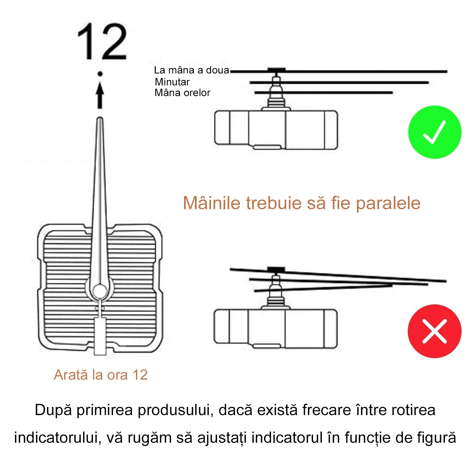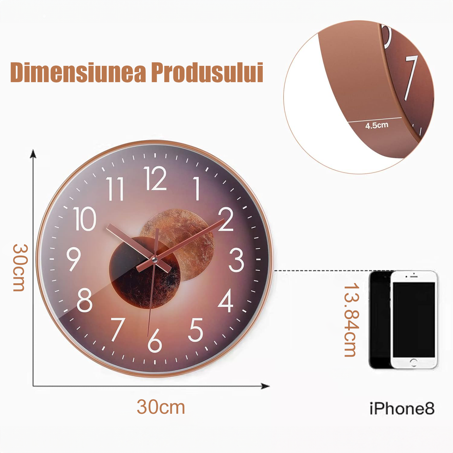 【Precise si sigure】Ceas perete de 30cm(12 inch), utilizeaza o miscare superioara de maturare pentru a garanta liniste reala cu mana a doua neteda. Miscarile precise garanteaza timpul precis.