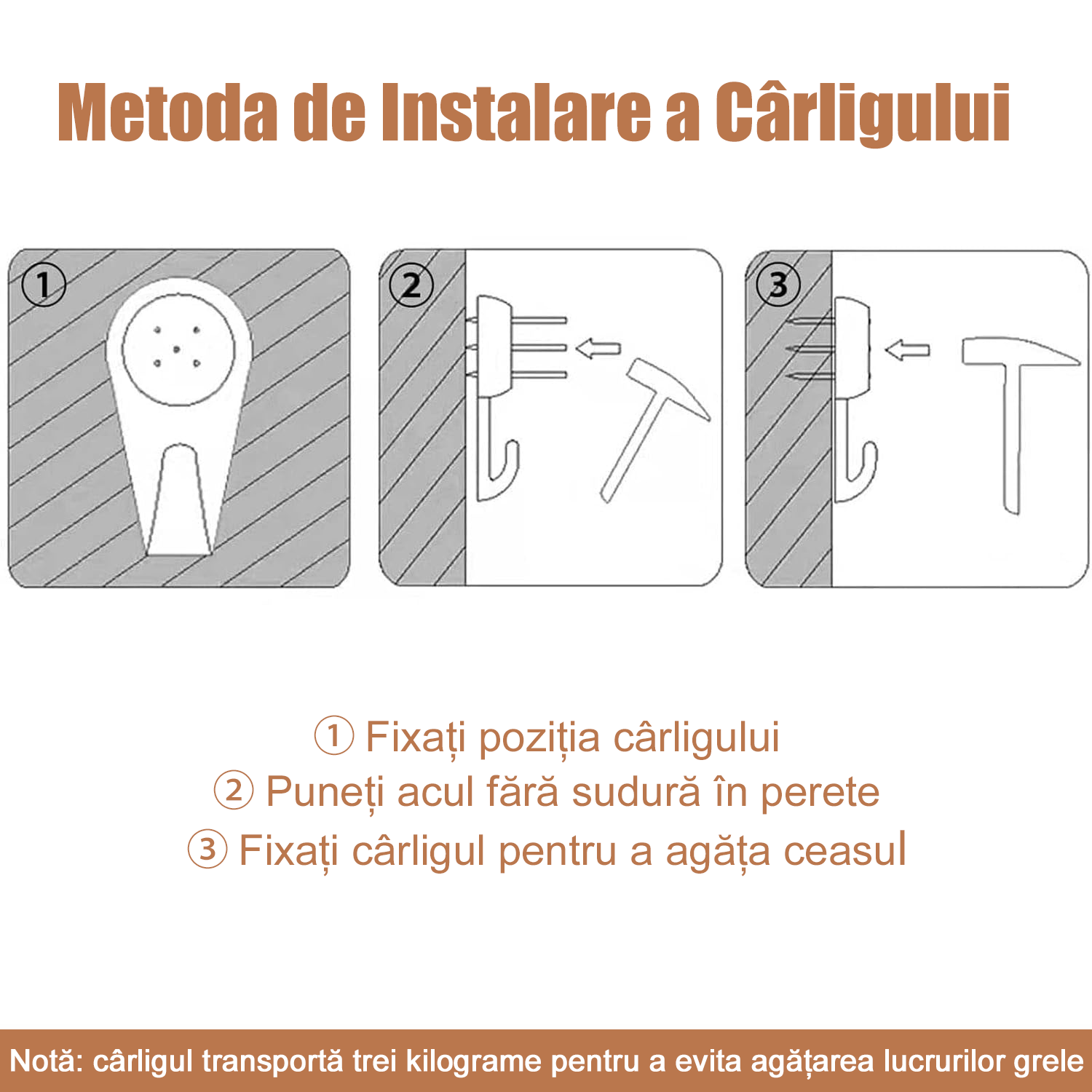 【Usor de utilizat】design fara perforare, ceas perete silent iosinstalarea cuielor invizibile nu va deterioreaza prea mult peretele, puteti atasa in siguranta ceas perete mare in cateva secunde.