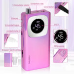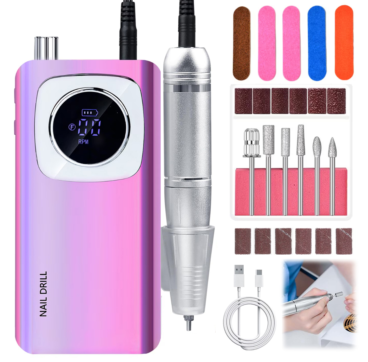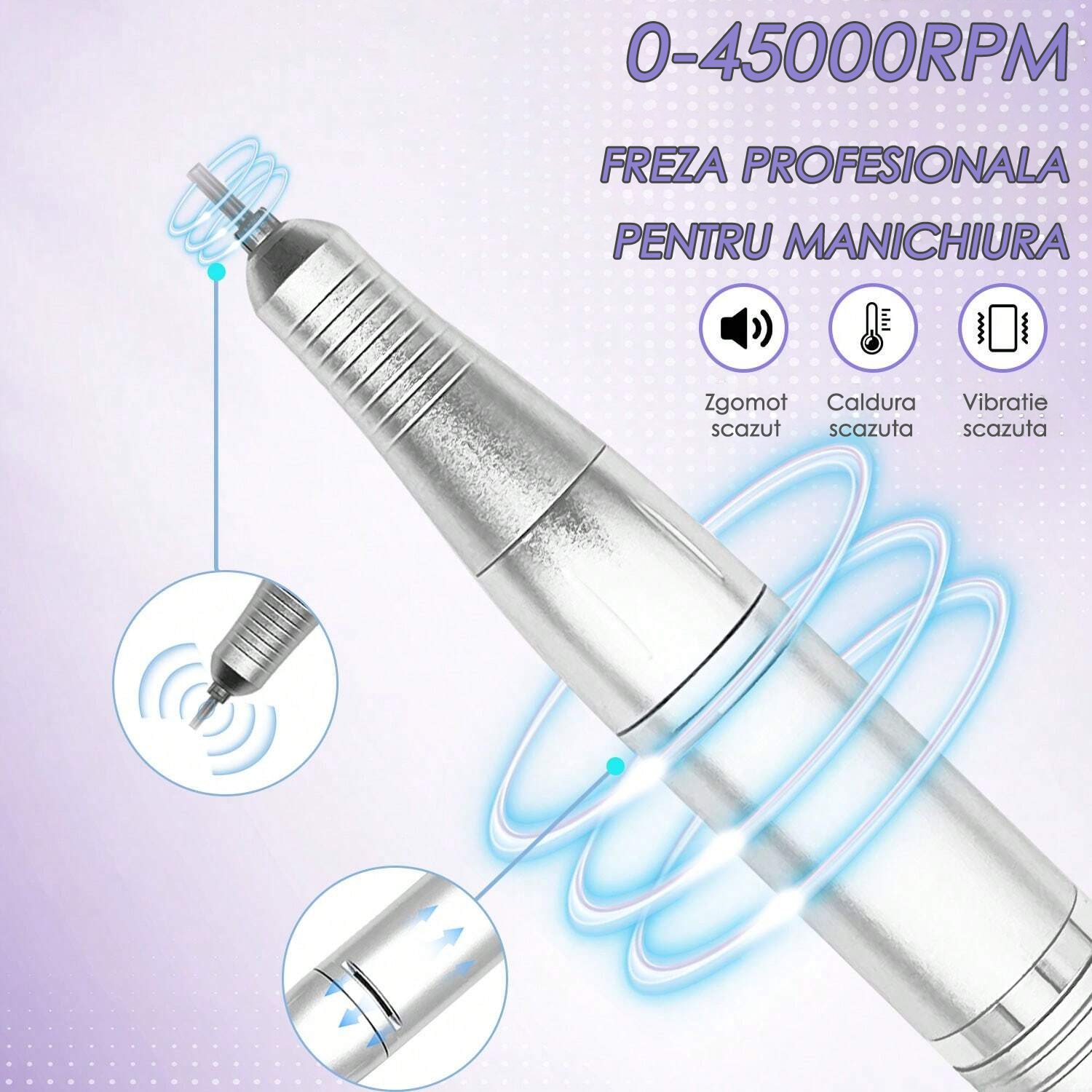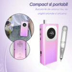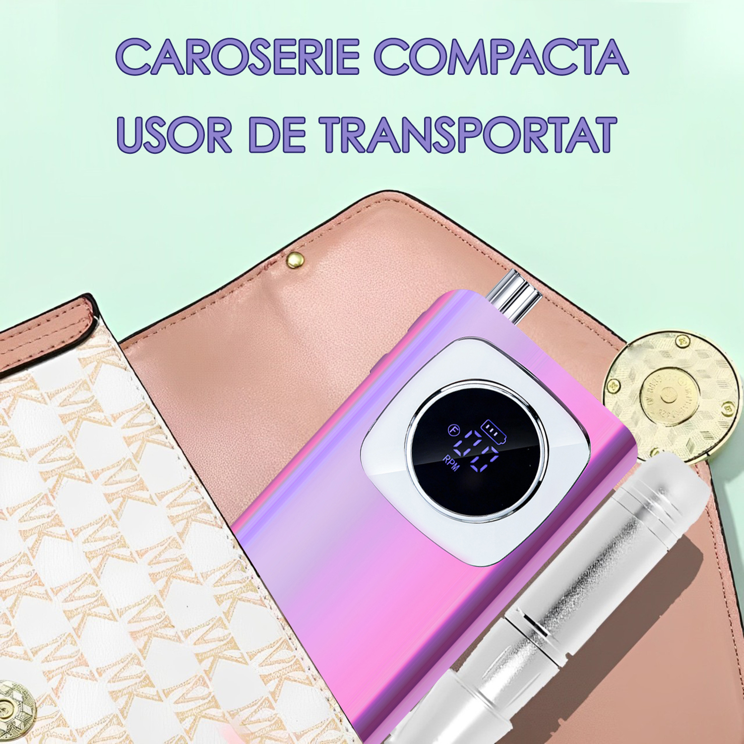 Freza Unghii Profesionala, BYONDSELF®, Portabil, 45000RPM, Manichiura, Slefuire, Lustruire, 2000mAh, Display LED Directia de rotatie/Puterea ramasa/Viteza, Cu Pila de Unghii, Mov