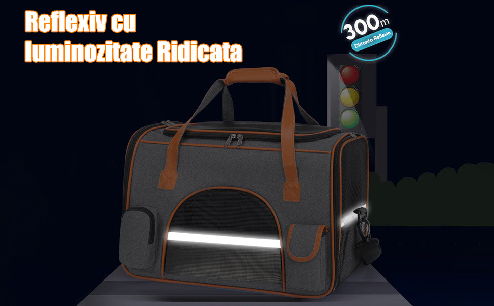 | 【Benzi reflectorizante de inalta luminozitate】: Geanta pentru transport animale mici adauga materiale reflectorizante de inalta luminozitate, care pot reflecta avertismentele pe timp de noapte. Distanta de reflectare poate ajunge la 300 m, ceea ce poate face ca vehiculele care trec sa acorde atentie evitarii si sa protejeze siguranta dvs. animalele tale de companie. |