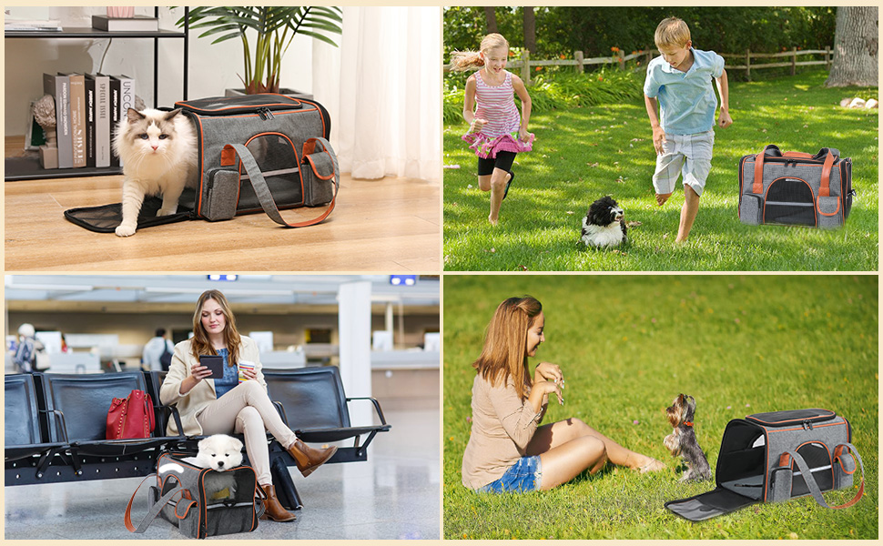 | 【Design de siguranta】 Geanta Transport Animale este echipat cu un cadru din microfibra pentru a preveni caderea blatului. Geanta Transport Animale ofera manere captusite care pot fi lipite si purtate ca ham dublu sau curea de bagaje pentru un transport sigur. Curelele de umar captusite si reglabile asigura confort maxim si iti mentin mainile libere.