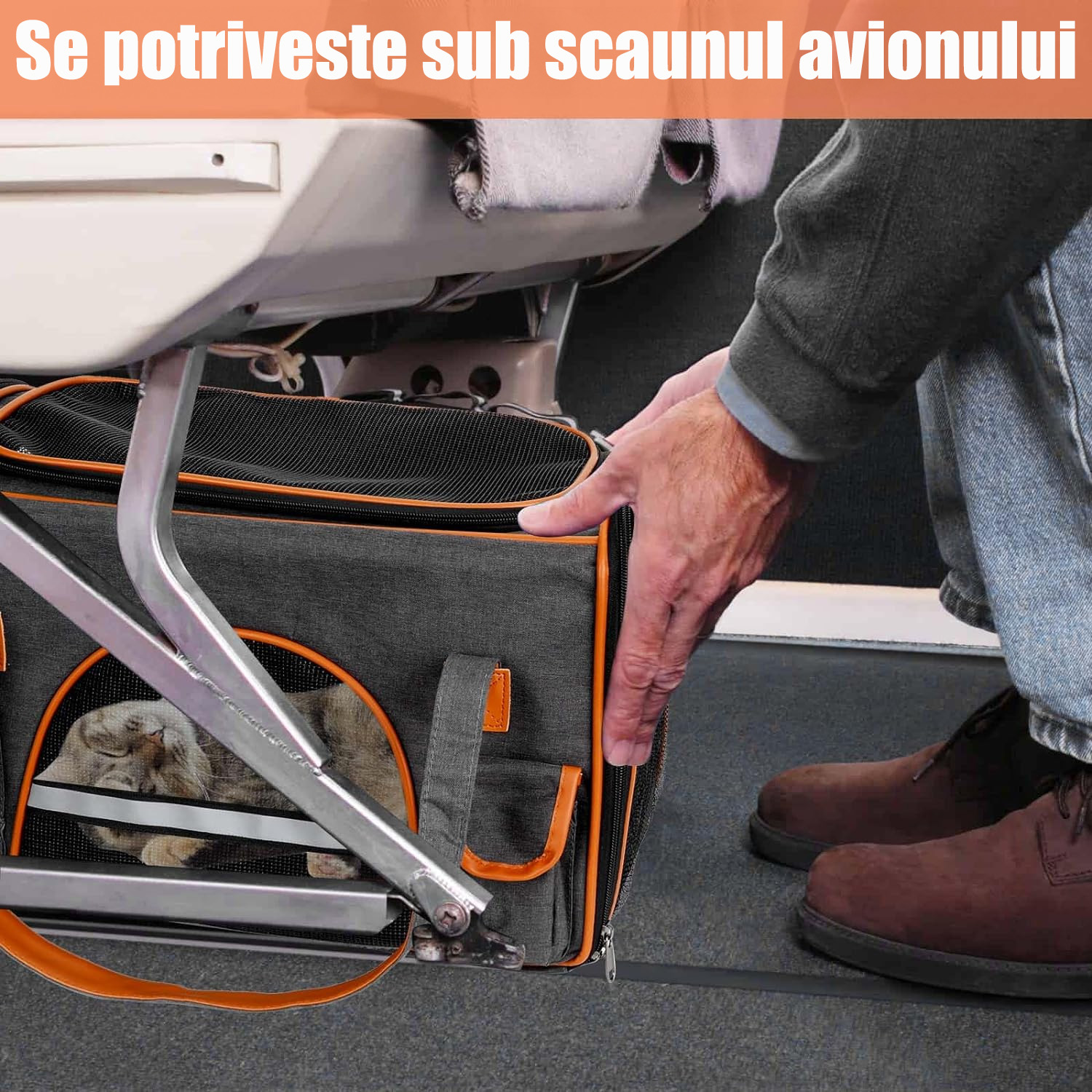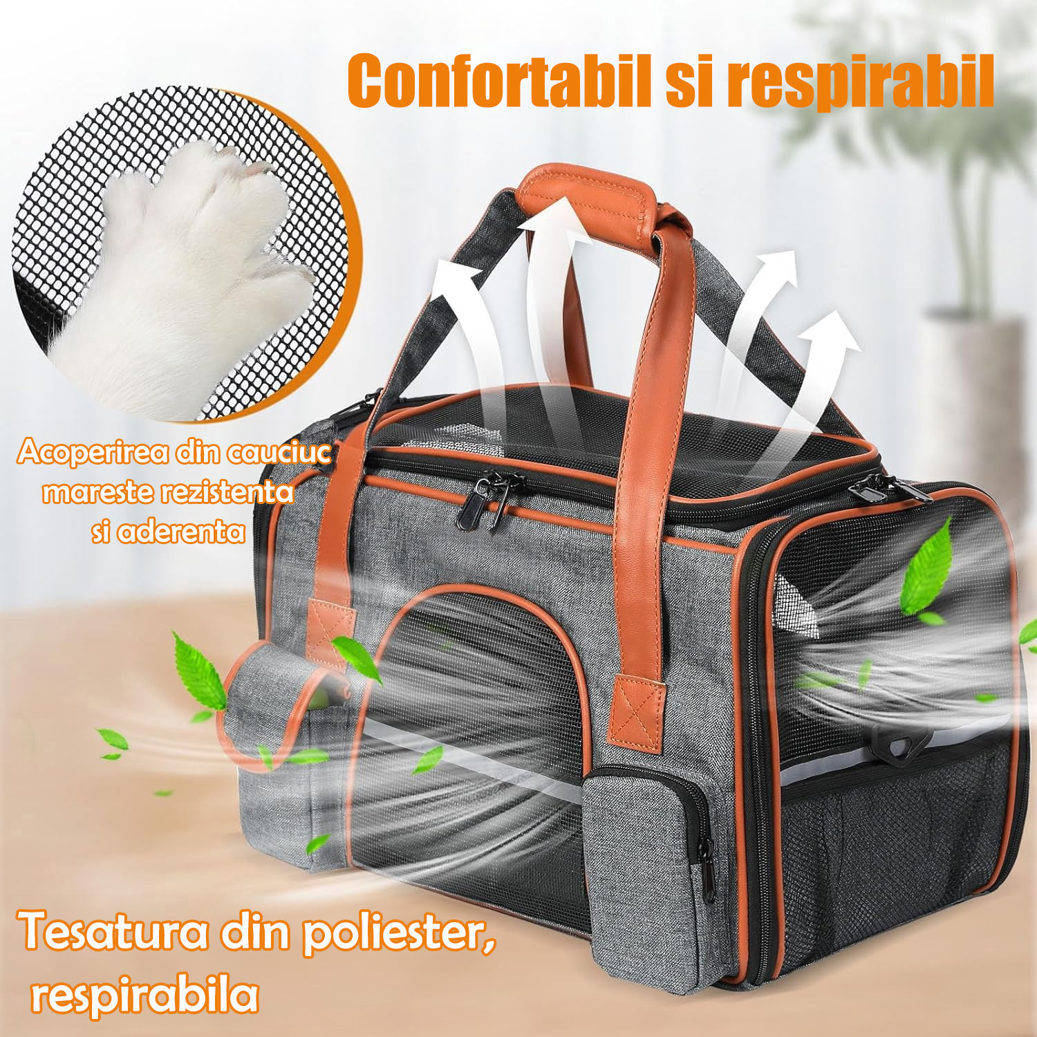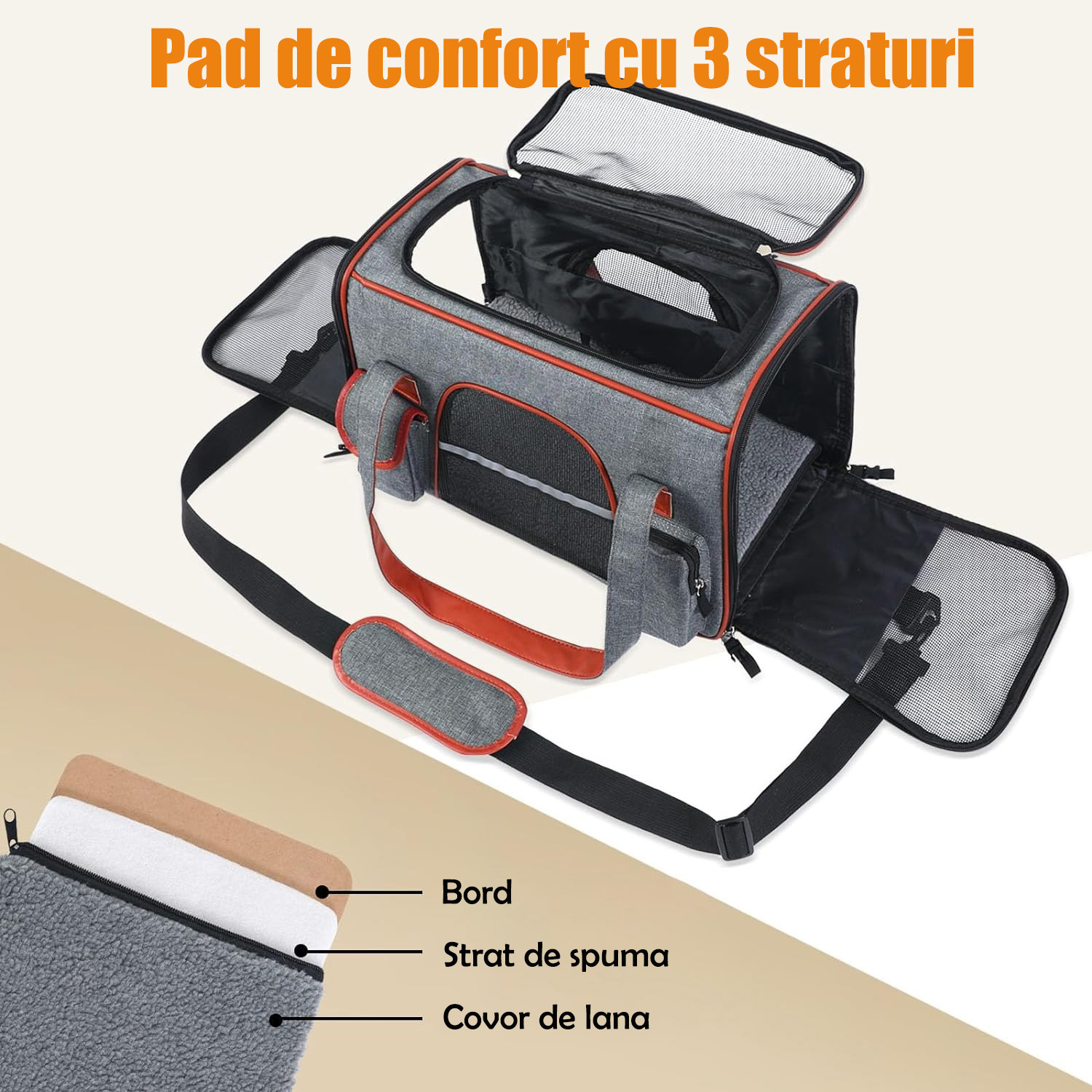 | BYUNDSELF®, Geanta transport animale, Geanta pliabila pentru pisici 45*25*28cm,Cu benzi reflectorizante, Cu curea de umar,5 plase respirabile, Cu saltea detasabila de plus, Potrivita pentru pisici sub 7,5KG/caini sub 5KG