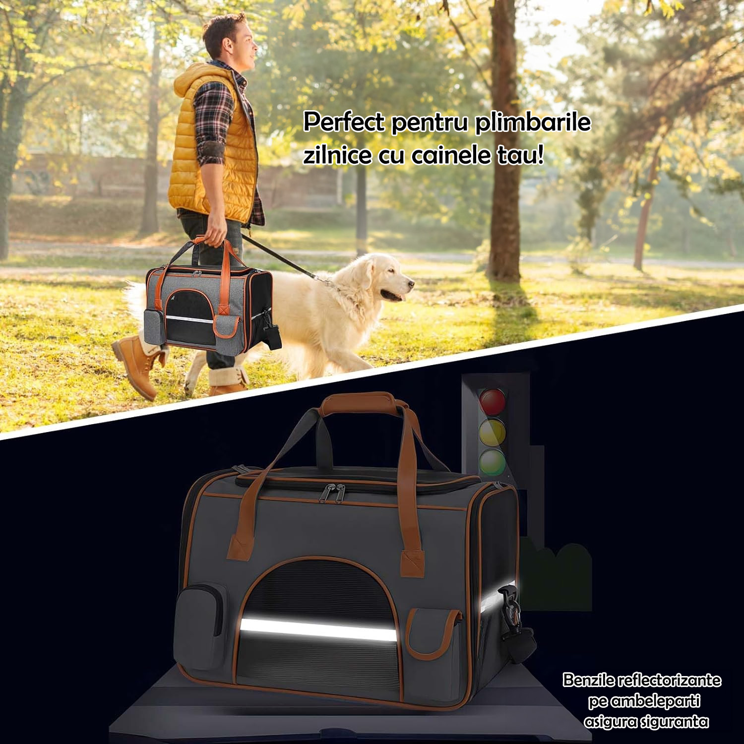| 【Benzi reflectorizante de inalta luminozitate】: Geanta pentru transport animale mici adauga materiale reflectorizante de inalta luminozitate, care pot reflecta avertismentele pe timp de noapte. Distanta de reflectare poate ajunge la 300 m, ceea ce poate face ca vehiculele care trec sa acorde atentie evitarii si sa protejeze siguranta dvs. animalele tale de companie. |