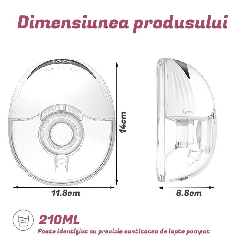 Pompa de san electrica Portabila, BYONDSELF®, cu Functie Masaj, 4 moduri cu 12 nivele de intensitate,discreta sub sutien, 210 ml, Fara fir, Ecran tactil LED, Alb |