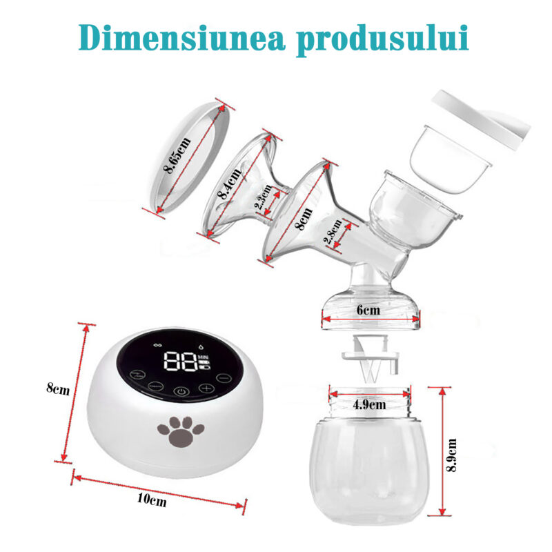pompa electrice. Mod aspiratie: aspiratie stabila a laptelui, se opreste automat dupa 20 de minute de aspirare a laptelui, caracteristica esentiala a pompa san electrice. Mod mixt: 5 aspiratii superficiale si 1 aspiratie profunda, golire si evacuare rapida a laptelui, optimizat pentru pompa san. Mod lactatie: stimuleaza lactatia, un avantaj al pompa electrice pentru mamele in perioada alaptarii. Modul Inverter: Goliti rapid si expulzati laptele; Modul de alaptare: Stimularea lactatiei. Aspiratie puternica: Fiecare mod de lucru are 12 puteri de aspiratie diferite de ales. Puterea maxima de aspiratie poate ajunge la 290+mmHg. Se recomanda sa incepeti cu cea mai joasa treapta si sa alegeti nivelul potrivit pentru a va ingriji sanii, indiferent de tipul pompei utilizate. |