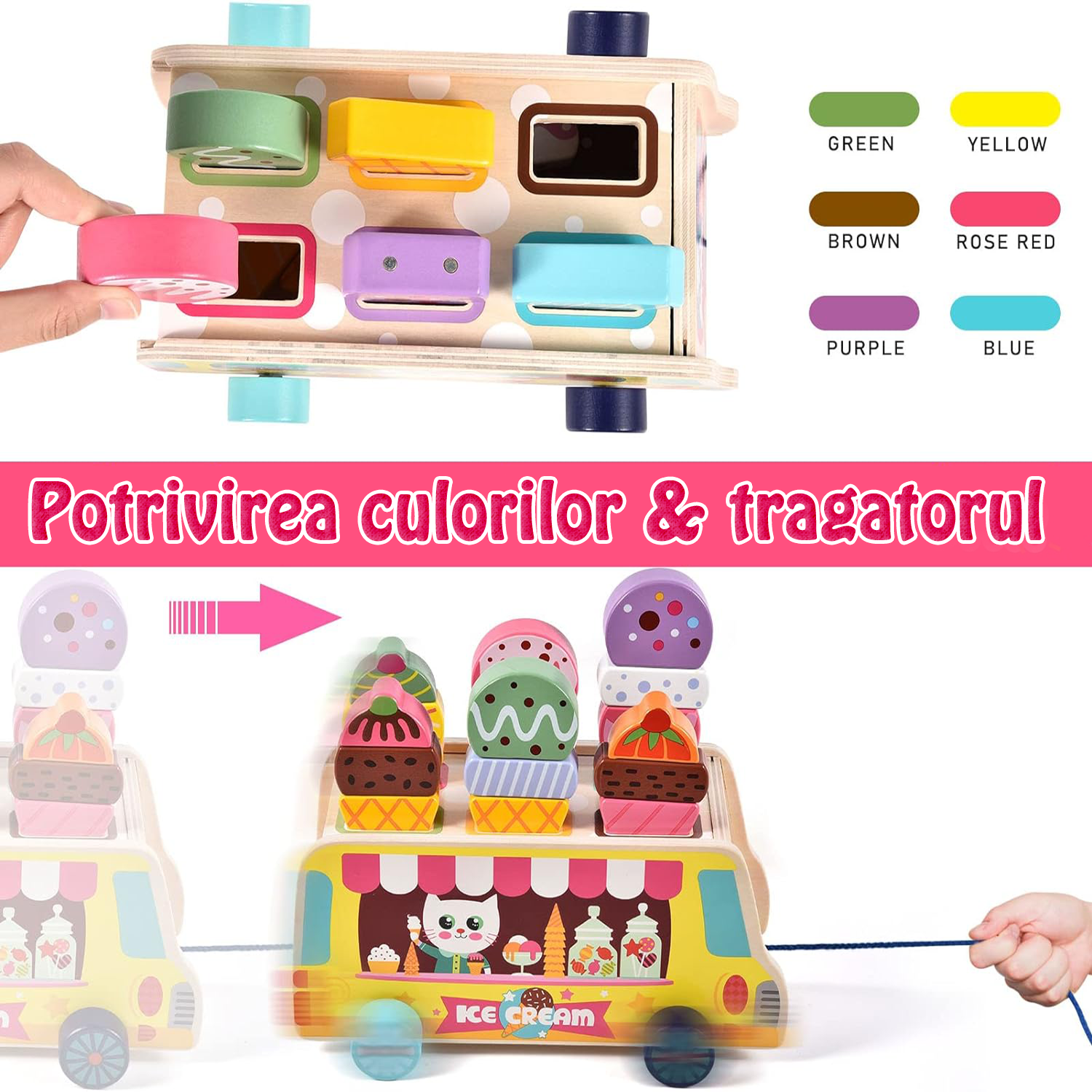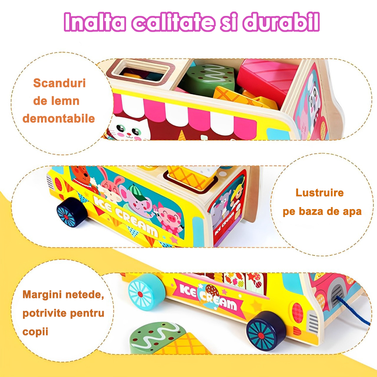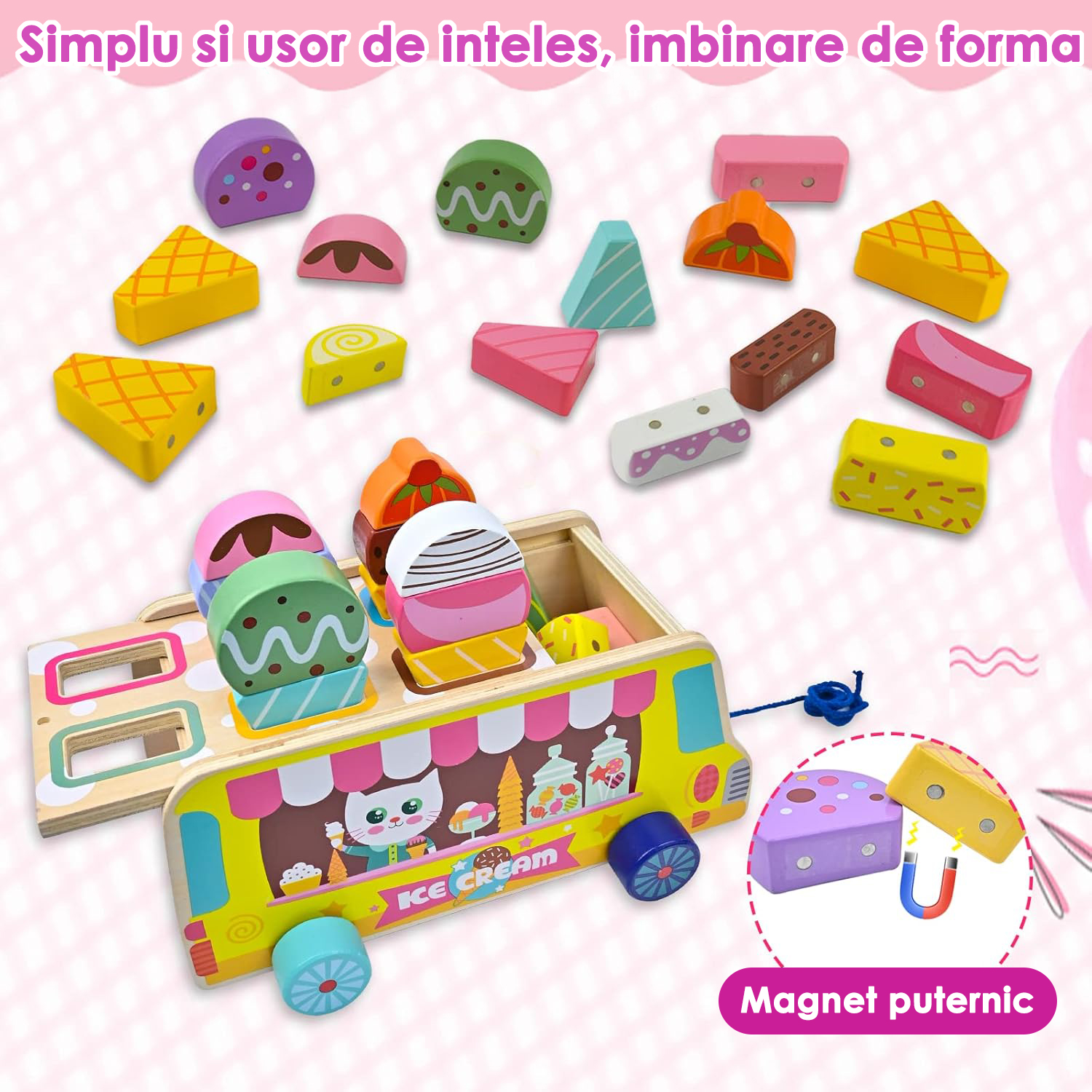 Jucarie Educativa Montessori Din Lemn, BYONDSELF®, Tabla Magnetica, Inghetata, Sortare Forme, Multicolor, Pentru Baieti Si Fete 2 3 4 Ani