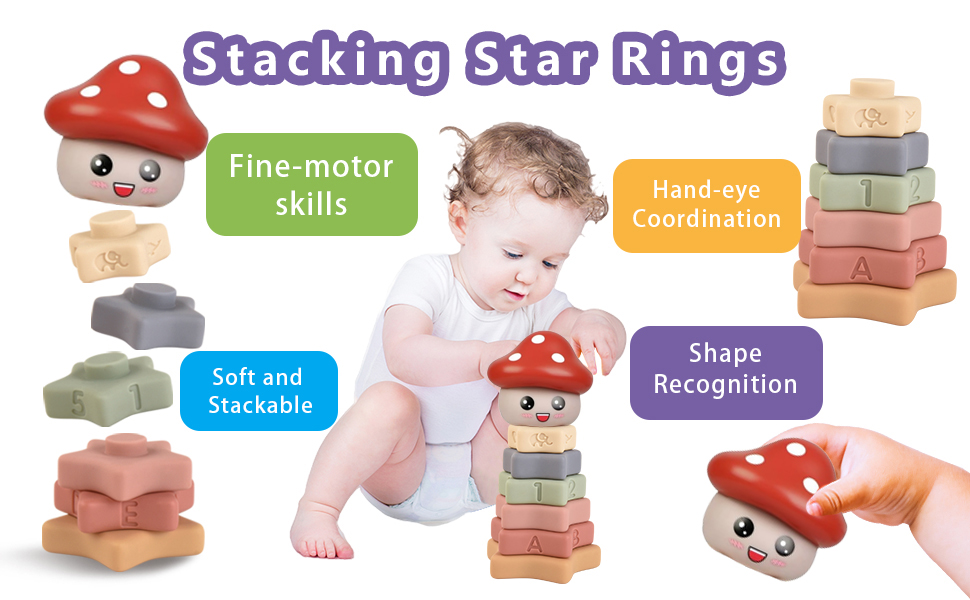 【Stivuirea distractive a inelelor cu stele pentru a antrena abilitatile motorii fine ale bebelusului tau】