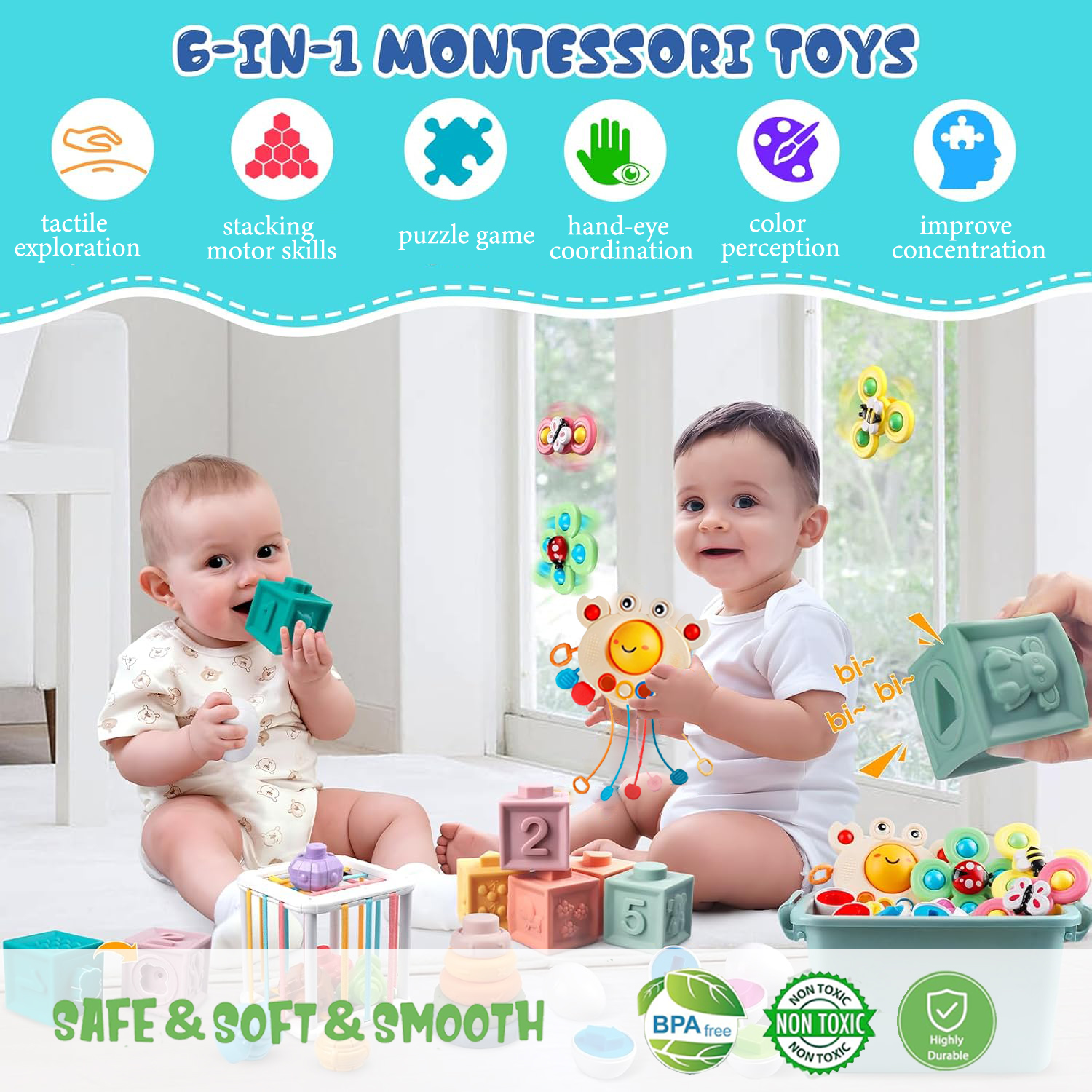 | Acest set de jucarii senzoriale Montessori 6 in 1 este un partener de joaca educational complet, conceput pentru bebelusii de peste 6 luni, combinand siguranta, distractia si educatia timpurie! Fabricat din silicon alimentar si materiale ABS, este fara BPA, rezistent la muscaturi si usor de curatat. Setul de 28 de piese include oua potrivite, blocuri de stivuit, jucarii cu franghie si alte componente bogate si este asociat cu o cutie de depozitare portabila, astfel incat educatia timpurie sa poata fi efectuata oricand si oriunde. Jucariile interactive folosesc multiple moduri de joc, cum ar fi clasificarea culorilor, potrivirea formelor si stivuirea blocurilor, pentru a cultiva simultan cognitia culorilor si formei bebelusului, coordonarea mana-ochi si gandirea logica. Materialul moale poate, de asemenea, ameliora disconfortul din timpul eruptiei dentare. Jucaria cu ventuza se poate roti pentru a produce sunete, franghia de tragere cu crabul prinde bine, iar cutia cu blocuri de constructie cu banda elastica stimuleaza explorarea spatiului – fiecare jucarie ascunde misterul dezvoltarii senzoriale, putand fi folosita pentru interactiunea parinte-copil si jocul independent. De la functia de jucarie pentru dentitie la educatia timpurie, de la depozitare convenabila la portabilitatea in calatorii, acest set de jucarii de inalta valoare nu este doar un asistent complet pe calea cresterii bebelusului, ci si o alegere incurajatoare pentru cadourile de sarbatori, astfel incat invatarea fericita sa inceapa de la indemana! |