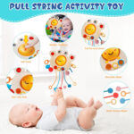 | Jucarie cu franghie: Aceasta jucarie interactiva draguta pentru bebelusi vine cu sase franghii din silicon de diferite culori si texturi, care pot fi trase, apasate si impinse in moduri diferite pentru a atrage copiii mici sa faca antrenament de forta. Cutia cu disc este, de asemenea, conceputa cu bule pop-up, bile cu buton glisant si bile tactile, permitand copiilor sa simta diferite senzatii tactile, potrivite pentru utilizare ca pandantive pentru carucior si jucarii de calatorie. |