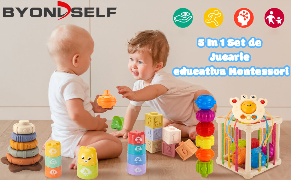 Jucarie Interactiva pentru Bebelusi, Educationala, BYONDSELF®, Montessori, din Silicon, Sigure pentru a fi Rontaite, pentru Baieti Fete, 6-12 luni, Multicolor