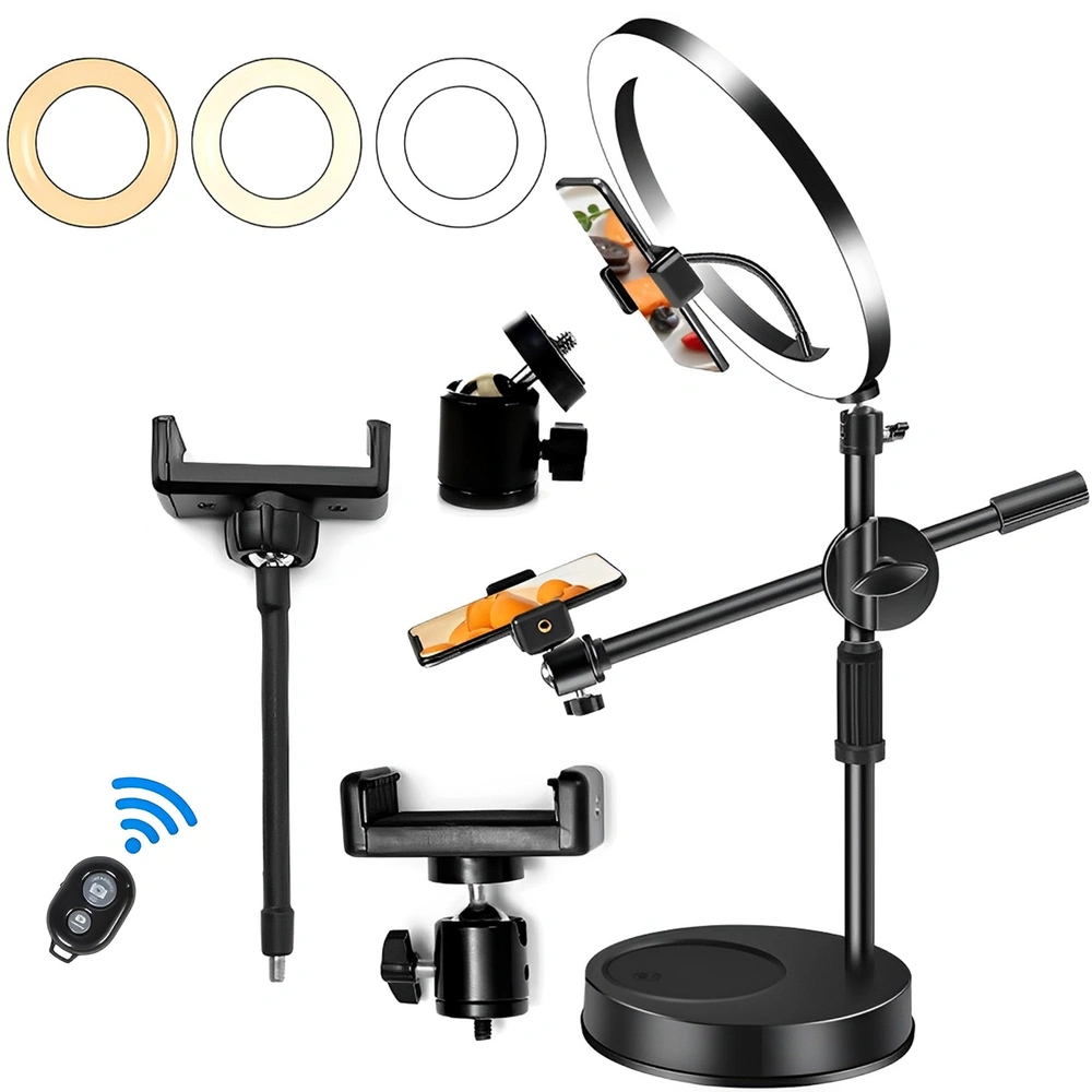 Lampa Circulara Profesionala, Brat Suplimentar de Lampa, Telescopic, BYONDSELF®, 41-60cm, Dual-Camera, Negru