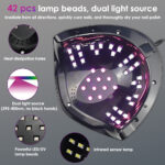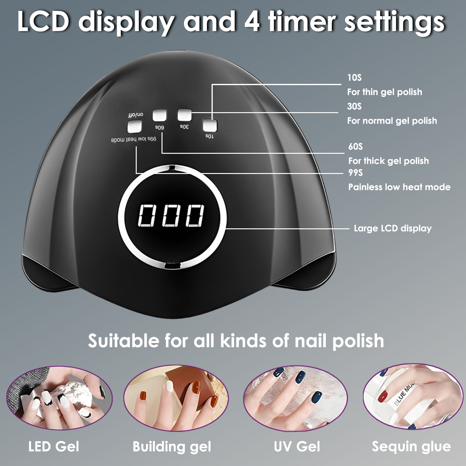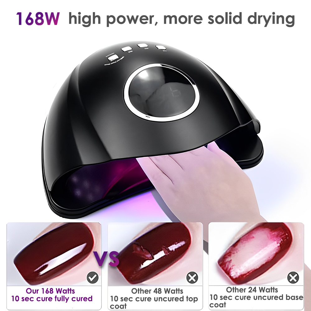 Lampa Profesionala Unghii UV LED, BYONDSELF®, 168W, Detectie Inteligenta, cu Pila Unghii, Uscare 10s/30s/60s/99s, 42 Leduri UV, LCD Afisaj Digital, pentru Manichiura Salon, Casa, Negru