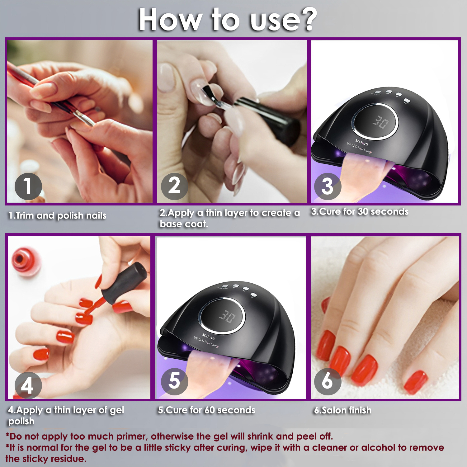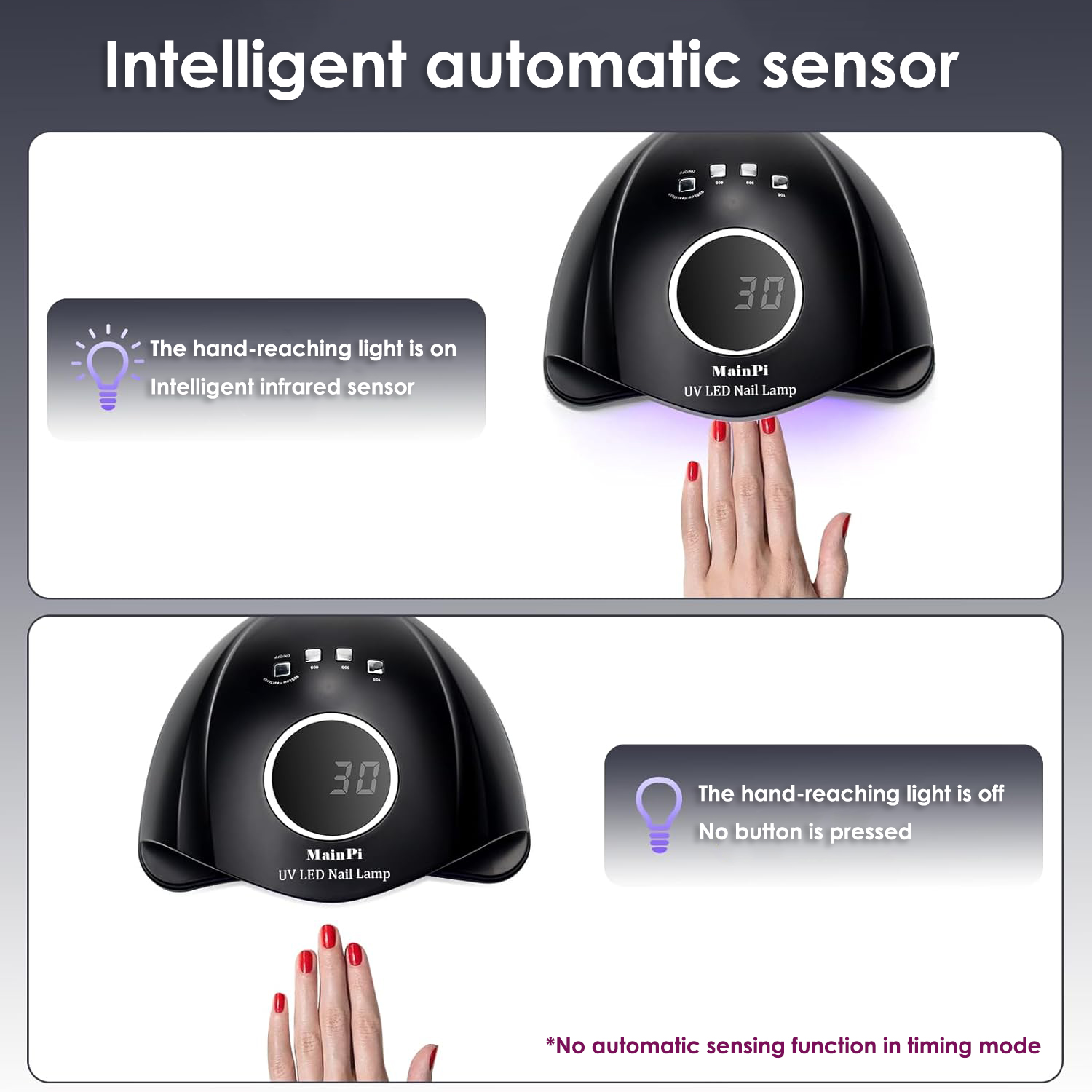 Lampa unghii UV LED este echipata cu perle avansate de lampa LED UV de 168W. Cu puterea tehnologiei cu lungime de unda dubla (365 nm + 405 nm), usuca rapid toate tipurile de lac de unghii, strasuri si lipici, 42 de margele LED durabile reduc timpul de uscare cu pana la 80%, iar senzorii automati va identifica automat mainile pentru a face lampa unghii mai usoara. Vine cu benzi de fire de lustruit si impingatoare de otel, nu este nevoie sa achizitionati suplimentar, maximizand confortul pentru viata dvs. Aceasta lampa uv unghii este ideala pentru orice stil de lampa manichiura acasa sau in salon. |