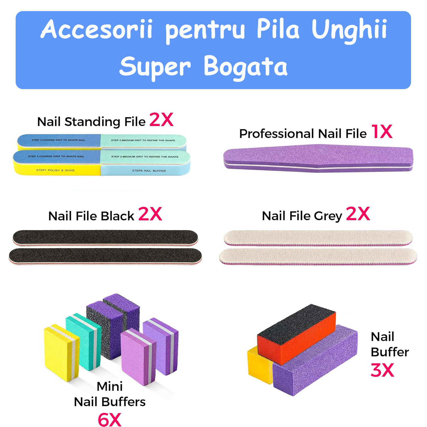 De ce sa cumperi seturi separate cand poti avea totul intr-un singur pachet generos? Veti primi 16 accesorii pentru manichiura: Pila de unghii multifunctionala verticala ×2, Pila de unghii profesionala ×1, Pila de unghii neagra, dreapta ×2, Pila de unghii gri, dreapta ×2, Bureti de lustruit unghii, mini ×6, Blocuri de lustruit unghii, mari ×3. Rezultate mai netede Vei fi surprins cat de mare poate fi diferenta dupa o singura sesiune de ingrijire a unghiilor. Lacurile de unghii adera mai bine pe unghii netede si lustruite – dar chiar si fara oja, unghiile raman cu o suprafata lucioasa, uniforma si stralucitoare. Utilizarea lampa contribuie la obtinerea acestor rezultate. |