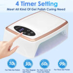 Lampa noastra pentru unghii are o putere de 380W, oferind un avantaj semnificativ. Cu cat puterea este mai mare, cu atat uscarea gelului este mai rapida, permitand o fixare rapida si economisind timp. Este ideala pentru saloane de manichiura sau pentru utilizare frecventa, fiind o lampa uv unghii excelenta. |