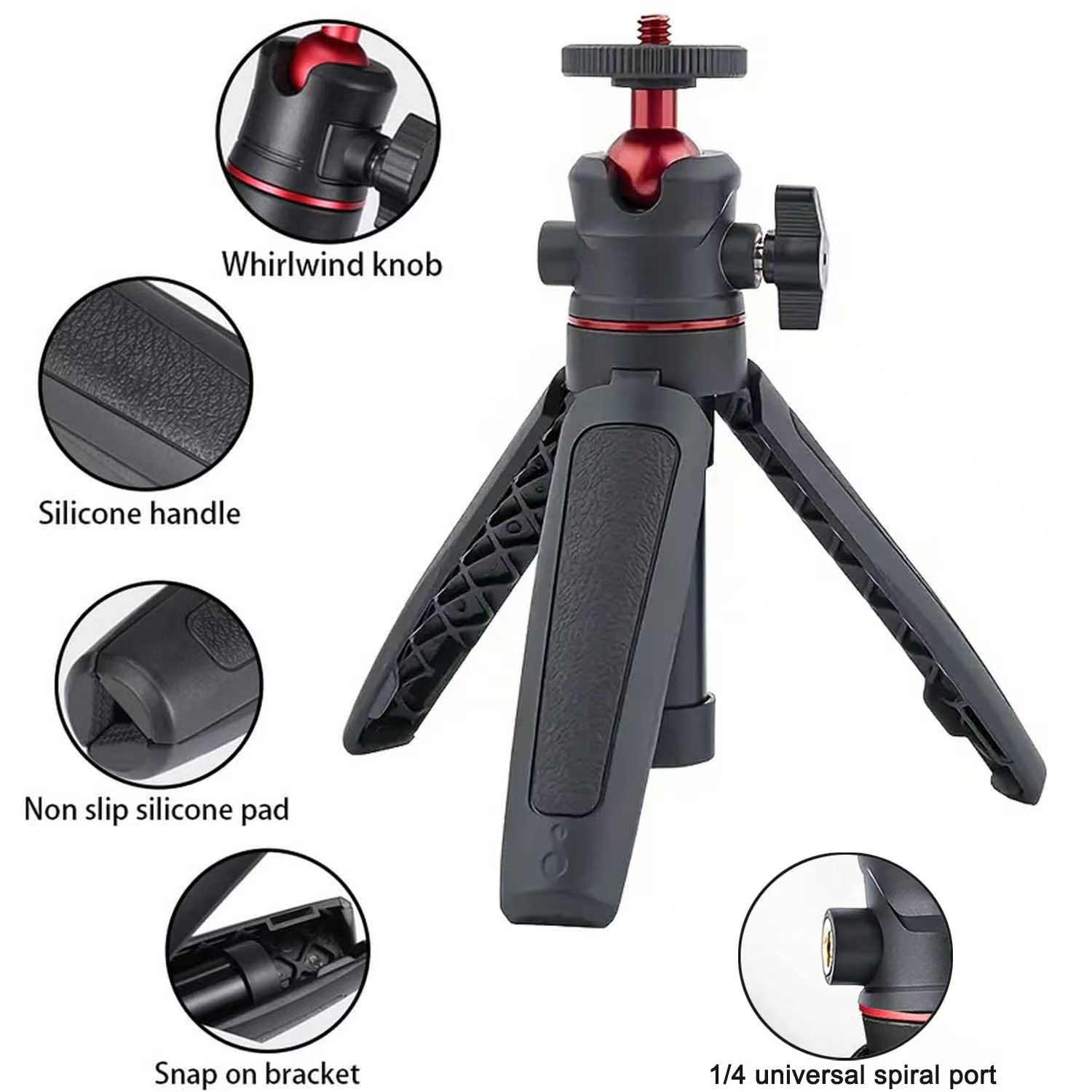 Fie ca esti un pasionat de fotografie mobila, un creator de Vlog-uri sau un expert in calatorii, Trepiede este partenerul tau perfect pentru a surprinde momente minunate oricand si oriunde! Mini Trepied este fabricat din aliaj de aluminiu de inalta rezistenta + silicon anti-alunecare + material ABS, care este usor, durabil si rezistent la cadere si presiune. Este echipat cu reglare flexibila a inaltimii in patru trepte, cardan rotativ la 360° si design umanizat anti-alunecare, permitandu-va sa obtineti cu usurinta o fotografiere stabila in mai multe unghiuri. Vine cu un suport pentru telefon mobil si este compatibil cu o varietate de dispozitive, cum ar fi telefoane mobile si camere sport, oferindu-va o experienta de fotografiere la nivel profesional! |