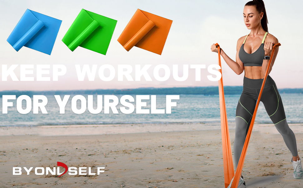 | Benzile de rezistenta pentru fitness BYONDSELF, portabile si durabile – Fiecare banda de rezistenta are 150 cm lungime x 15 cm latime, 0,35 mm grosime,Valoarea rezistentei 15LB. Durabil, elastic, usor si portabil, lungime extensibila de pana la 2 m. Perfect pentru utilizare in sala, birou sau acasa.