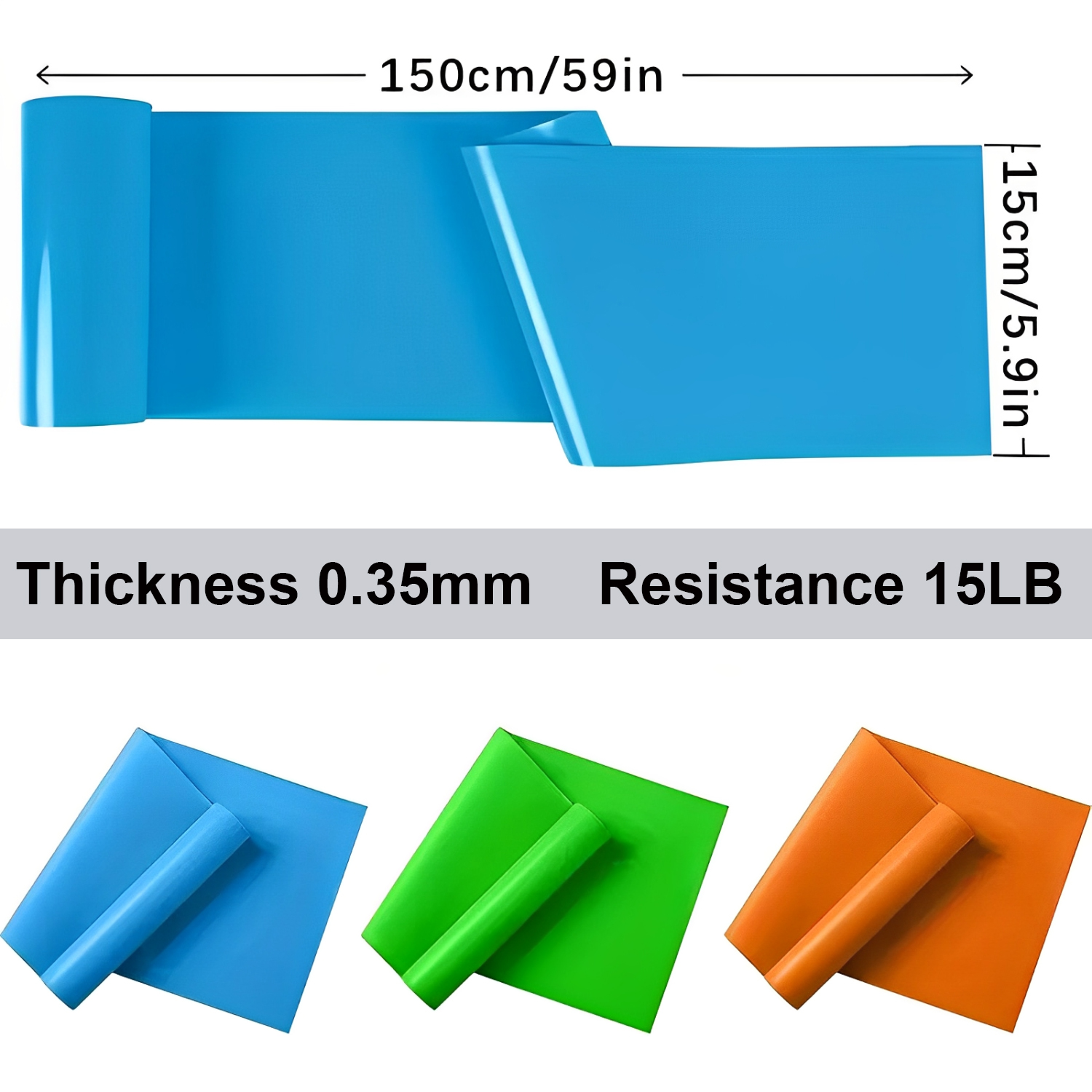 Set 3 Banda de rezistenta din latex de reabilitare, BYONDSELF®, Resistenta de 15lb, latime 15 cm, Lungime intindere 2m, pentru antrenament fitness, Yoga, Pilates, Portocaliu-Verde-Albastru