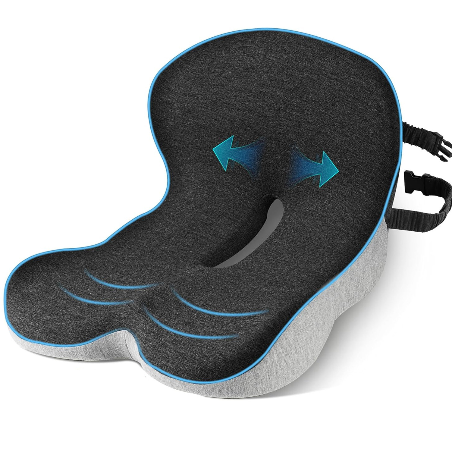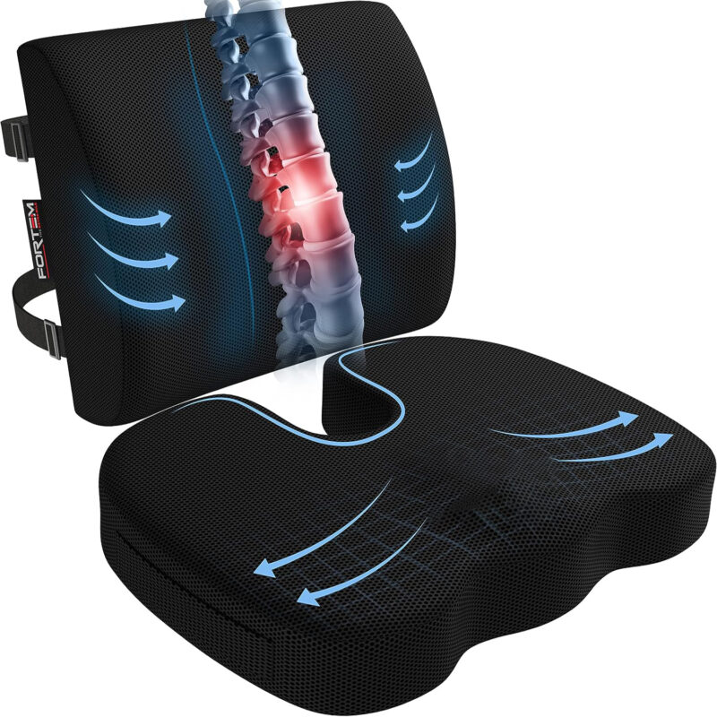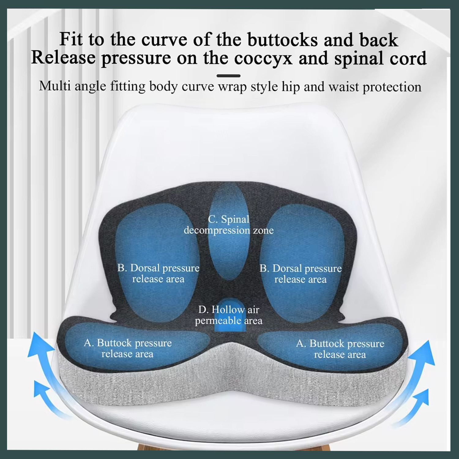 Conturul anatomic al perna ortopedica pentru sezut cu suport lombar , combinat cu gaurile de aerisire si distributia uniforma a presiunii, creeaza o experienta de sedere confortabila. Reduce semnificativ discomfortul cauzat de statul indelungat pe scaun, aliniind corect coloana si diminuand tensiunea din zona lombara, solduri si coapse.