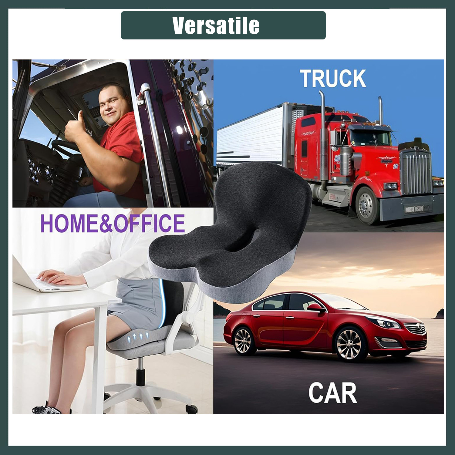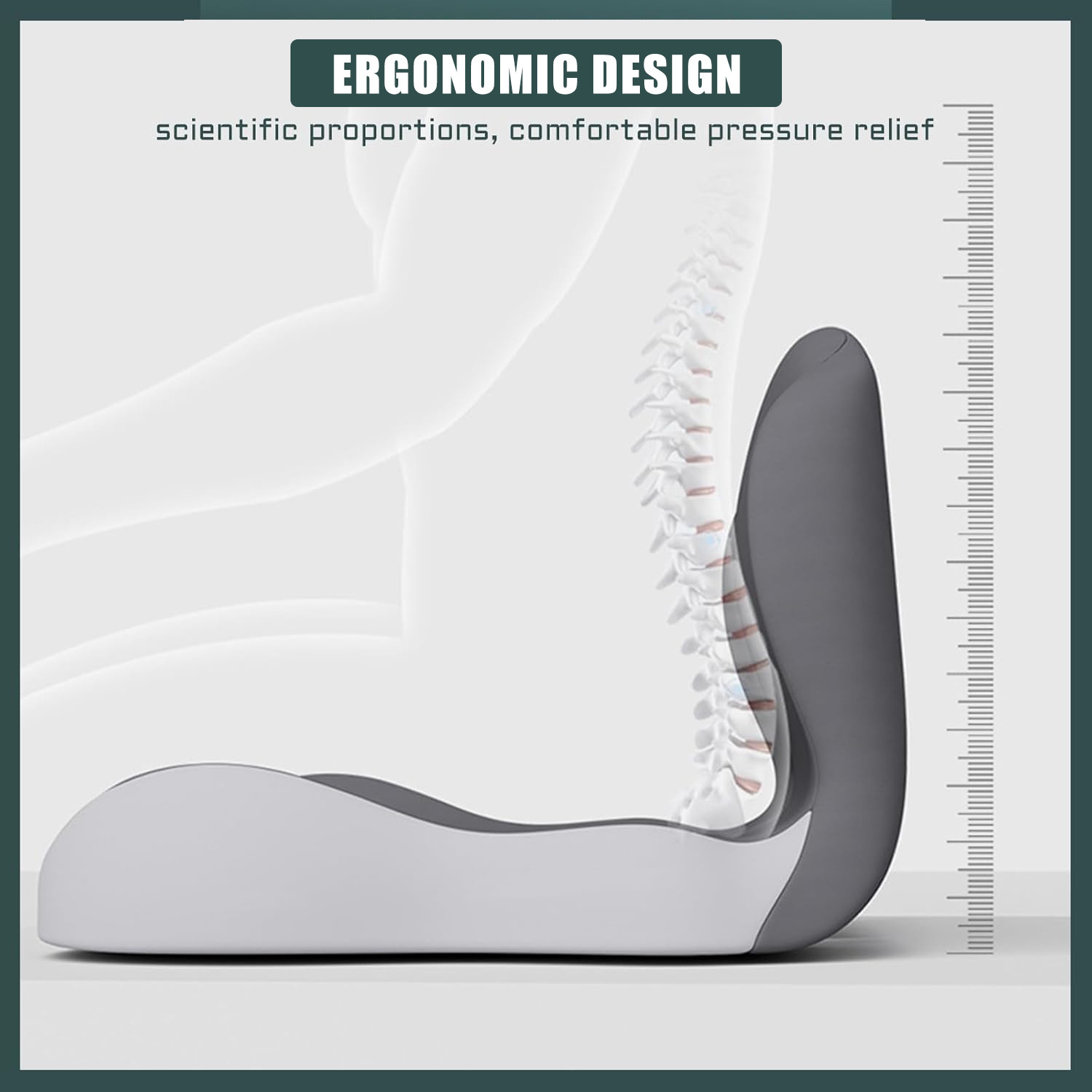 Perna Ortopedica Sezut si Perna Lombara, Design Integrat, BYONDSELF®, Ergonomic, Spuma Memorie 60D, Suport Lombar/Glutei, Anti-Durere Sciatica Coccis, pentru Scaune Birou/Auto/Camion, Gri Inchis