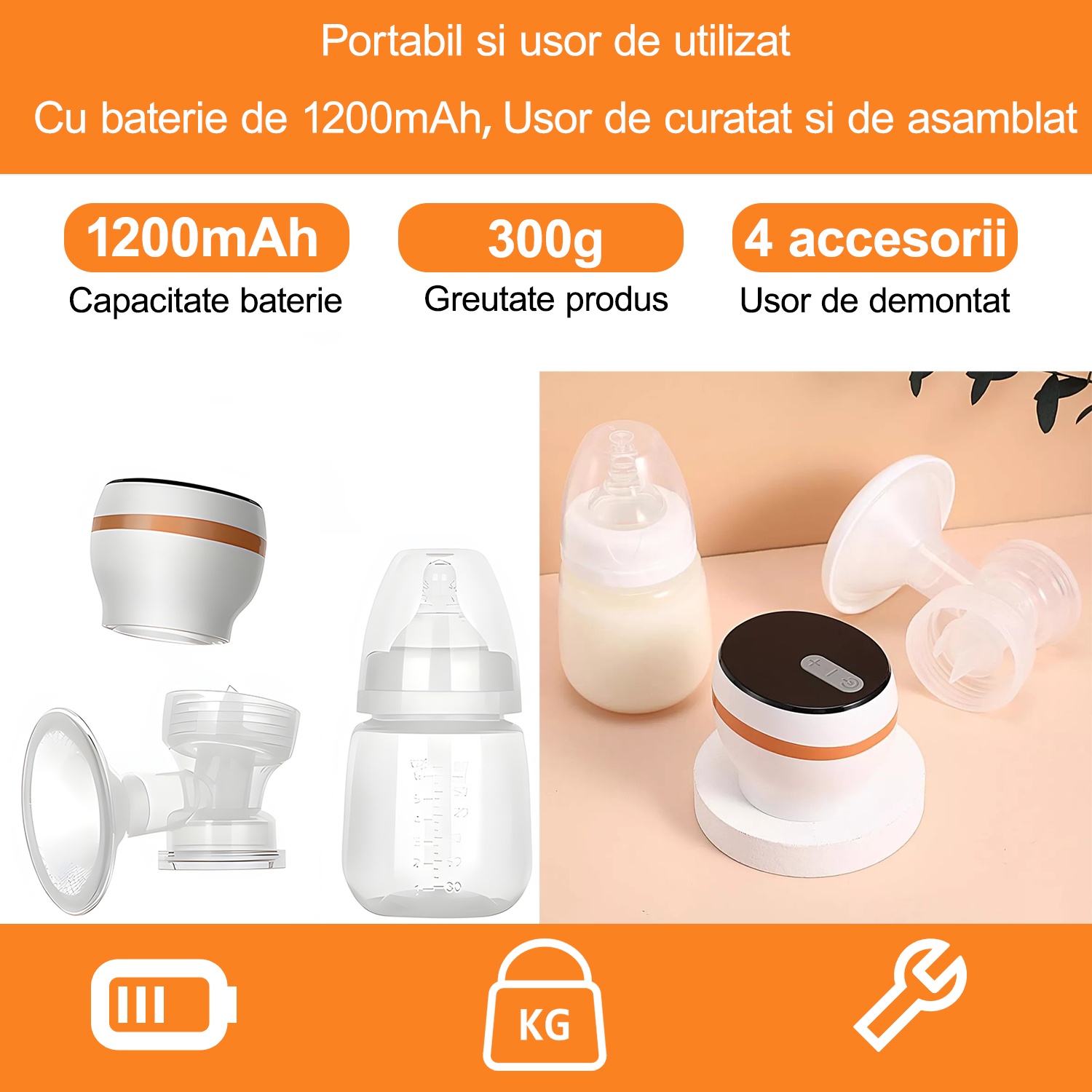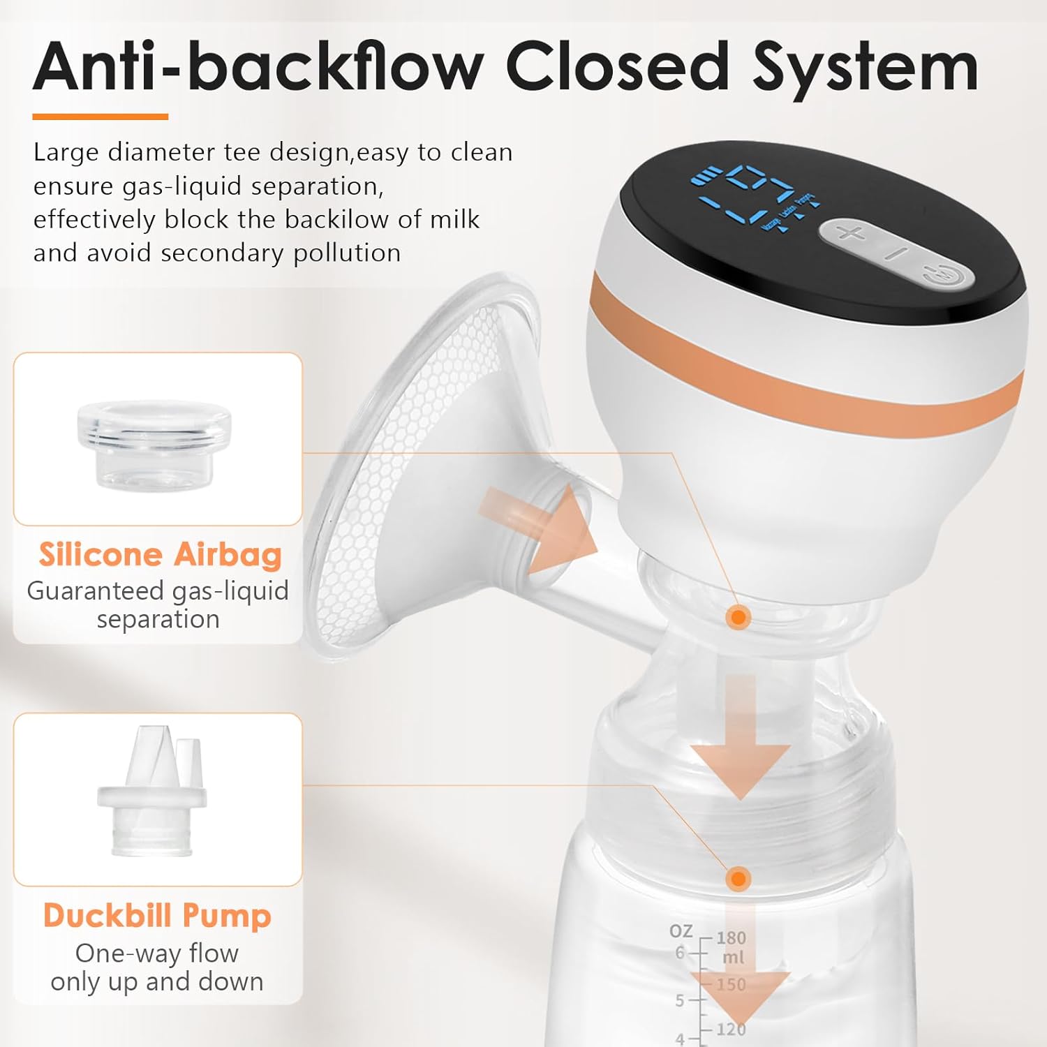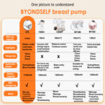 Pompa de San Electrica, BYONDSELF®, se Poate Conecta Direct la Pungi Stocare Lapte, Prevenind Contaminarea, cu 4 Pungi Stocare Lapte, Portabila, 4 Moduri, Ecran LED, 180 ML, 300g, Anti-Reflux, Alb