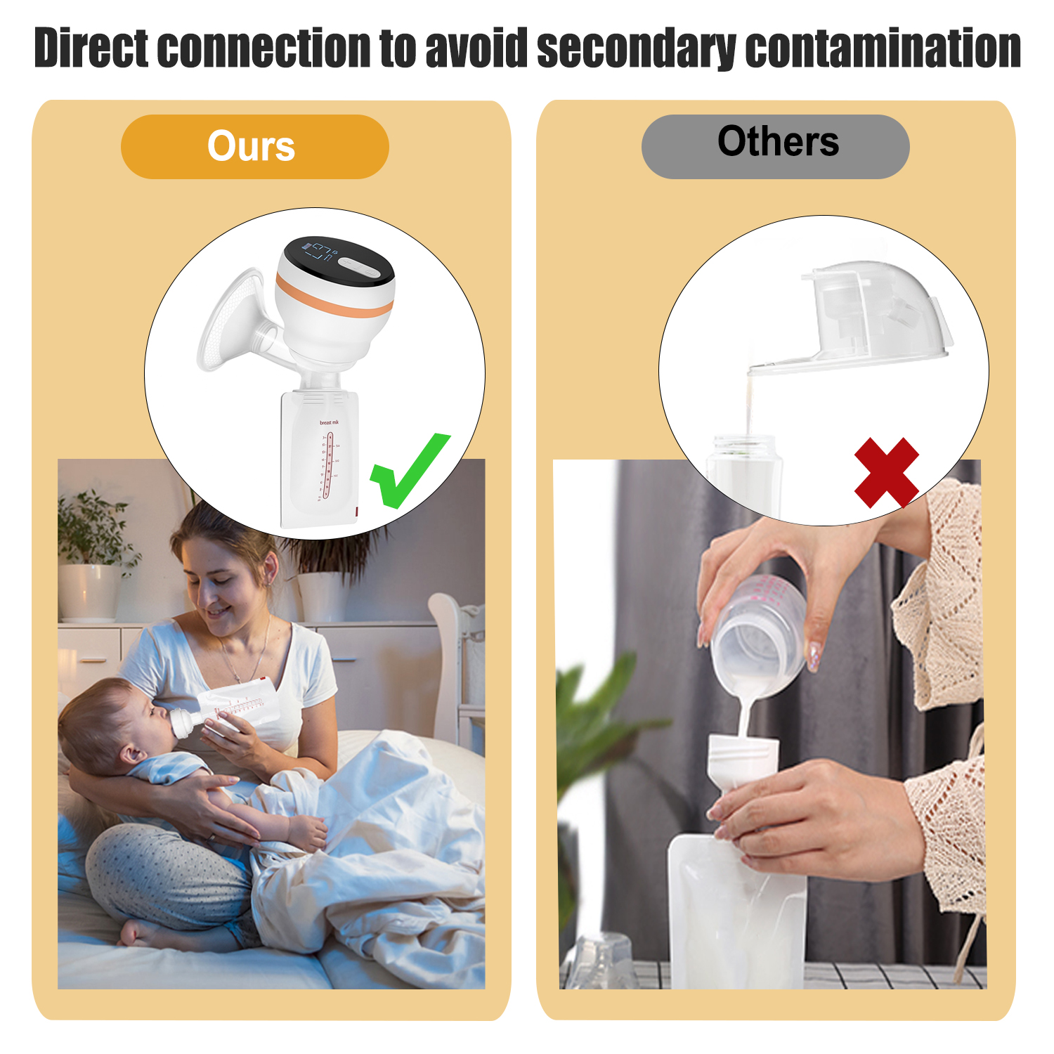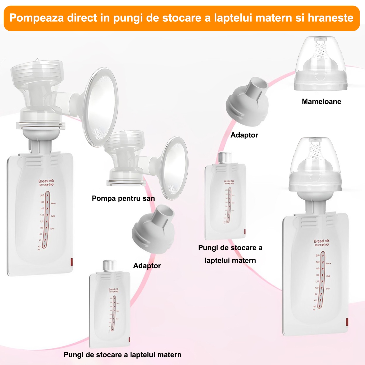 | Esti ingrijorata de inconvenientul de a pompa laptele atunci cand iesi la serviciu in timpul alaptarii? Esti deranjata de problema umflaturii laptelui in timpul alaptarii? Esti deranjata de prea mult lapte in timpul alaptarii? Esti nerabdatoare sa gasesti o pompa de san eficienta si confortabila? Esti ingrijorata ca bebelusului tau ii va fi foame si nu va putea bea lapte matern atunci cand iesi la joaca? Pungile pentru depozitarea laptelui pot rezolva cu usurinta aceasta problema. Alege pompa electrica de san BYONDSELF®. Designul imbunatatit al pompei de san, conectata direct la punga pentru depozitarea laptelui, poate evita eficient contaminarea secundara a laptelui matern. Pompele de san traditionale trebuie sa aspire laptele matern mai intai in biberon, apoi sa il toarne in punga pentru depozitarea laptelui pentru a doua oara. Acest design cu conexiune directa rezolva foarte bine acest tip de problema. Pompa de san vine si cu o suzeta, care poate fi instalata direct pe punga pentru depozitarea laptelui, ceea ce o face mai convenabila de transportat atunci cand iesi afara. |