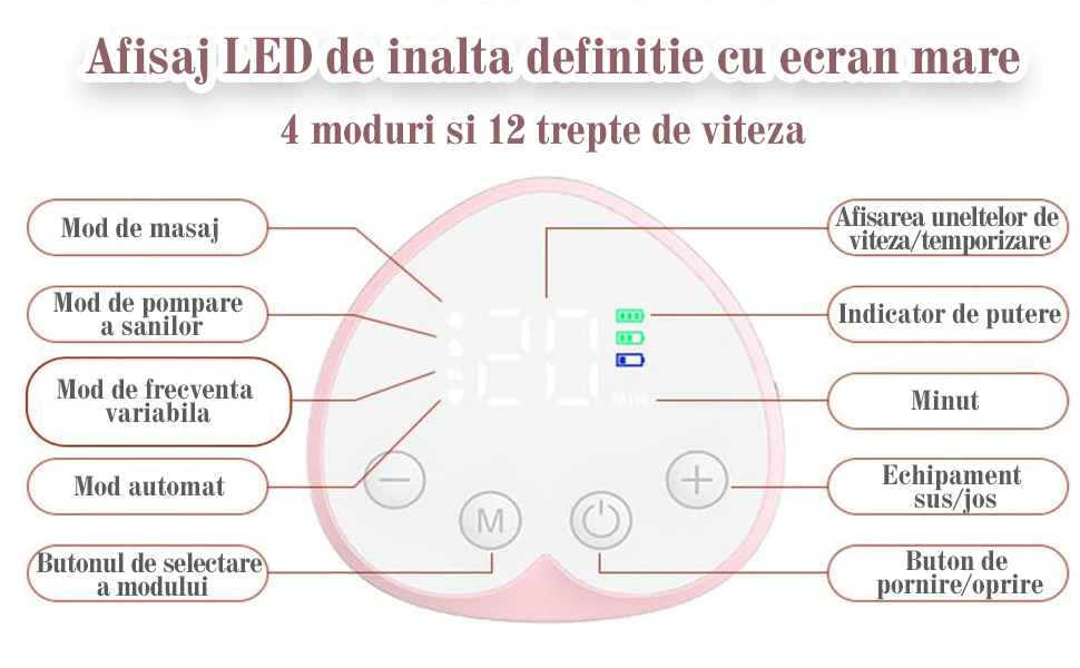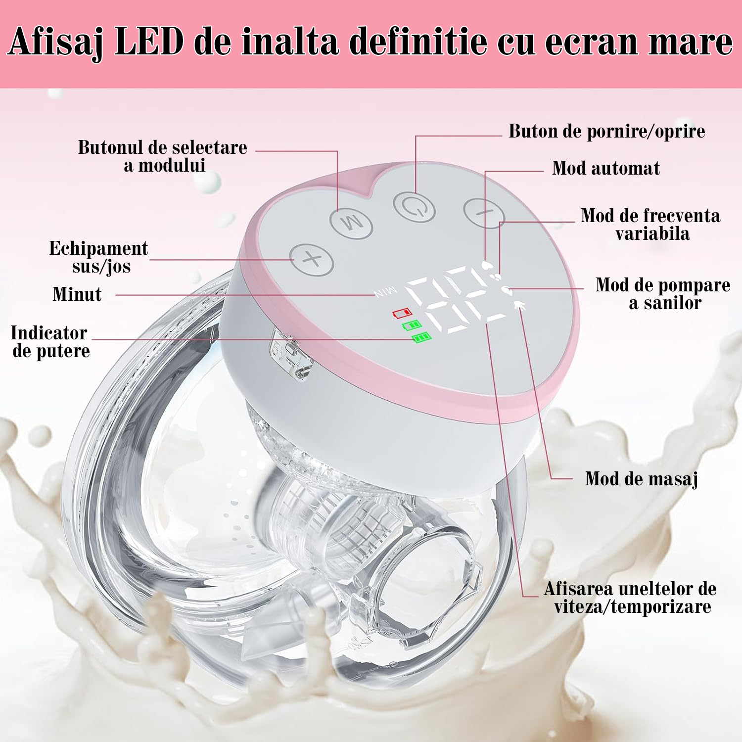 | Ecran de afisare de inalta definitie: ecran LED de inalta definitie, afisare in timp real a intensitatii aspiratiei sanilor, facand operarea mai intuitiva si convenabila.