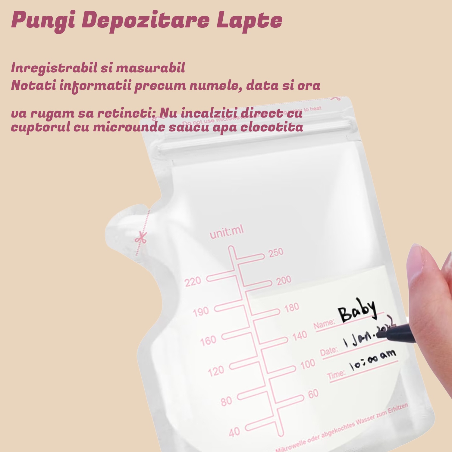 10 pungi de lapte: convenabil pentru depozitarea si transportarea laptelui extras, mentinandu-l proaspat.