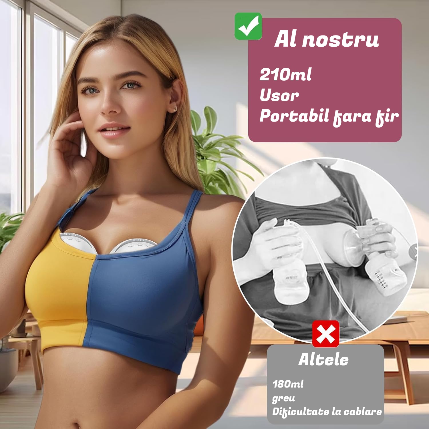 Aceasta pompa de san electrica dubla poate fi plasata direct intr-un sutien, permitand alaptarea usoara oricand, oriunde, indiferent daca se odihneste acasa, conducand sau lucrand, fara restrictii de locatie.