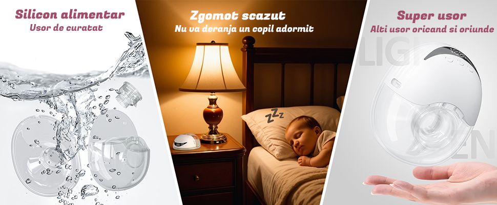 Material siliconic: Toate piesele care intra in contact cu laptele matern sunt fabricate din material siliconic sigur, fara BPA, care este usor de curatat si asigura ca fiecare utilizare este sigura si inofensiva.