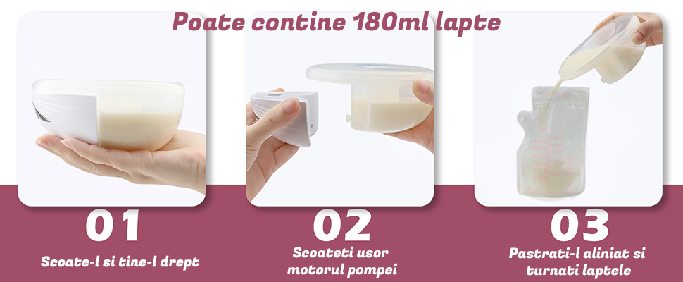 Capacitatea de 180ml: Fiecare pompa de san poate contine 180ml de lapte, satisfacti nevoile de baza ale alaptarii zilnice pentru mame.