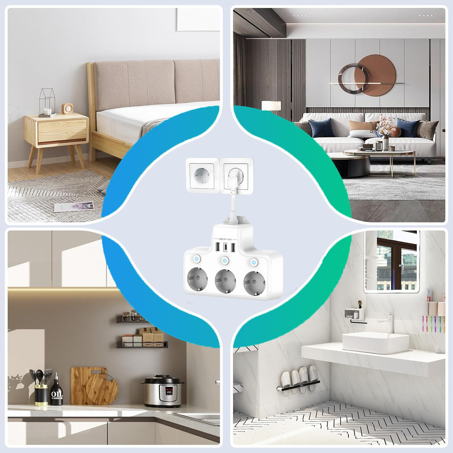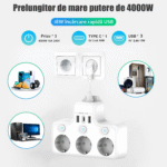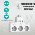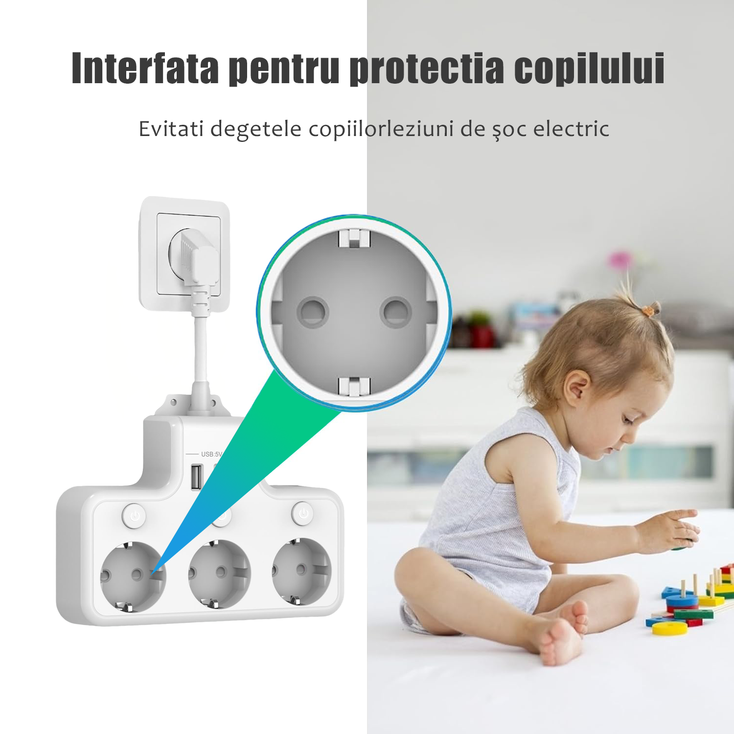 Prelungitor 4000W, 3 Prize/2 USB-A/1 USB-C, BYONDSELF®, 3 Intrerupator Individuel, Priza multipla Murale, Alb