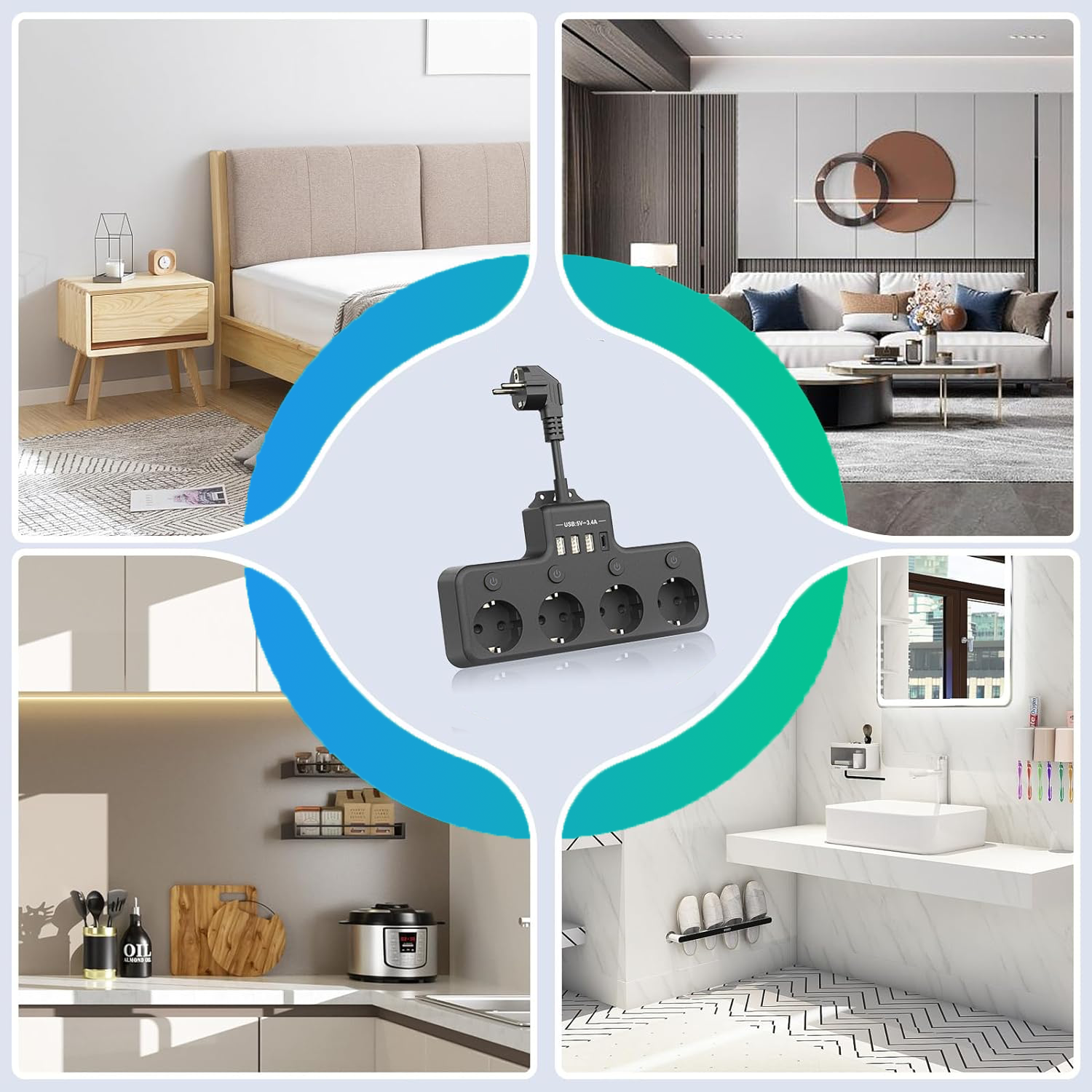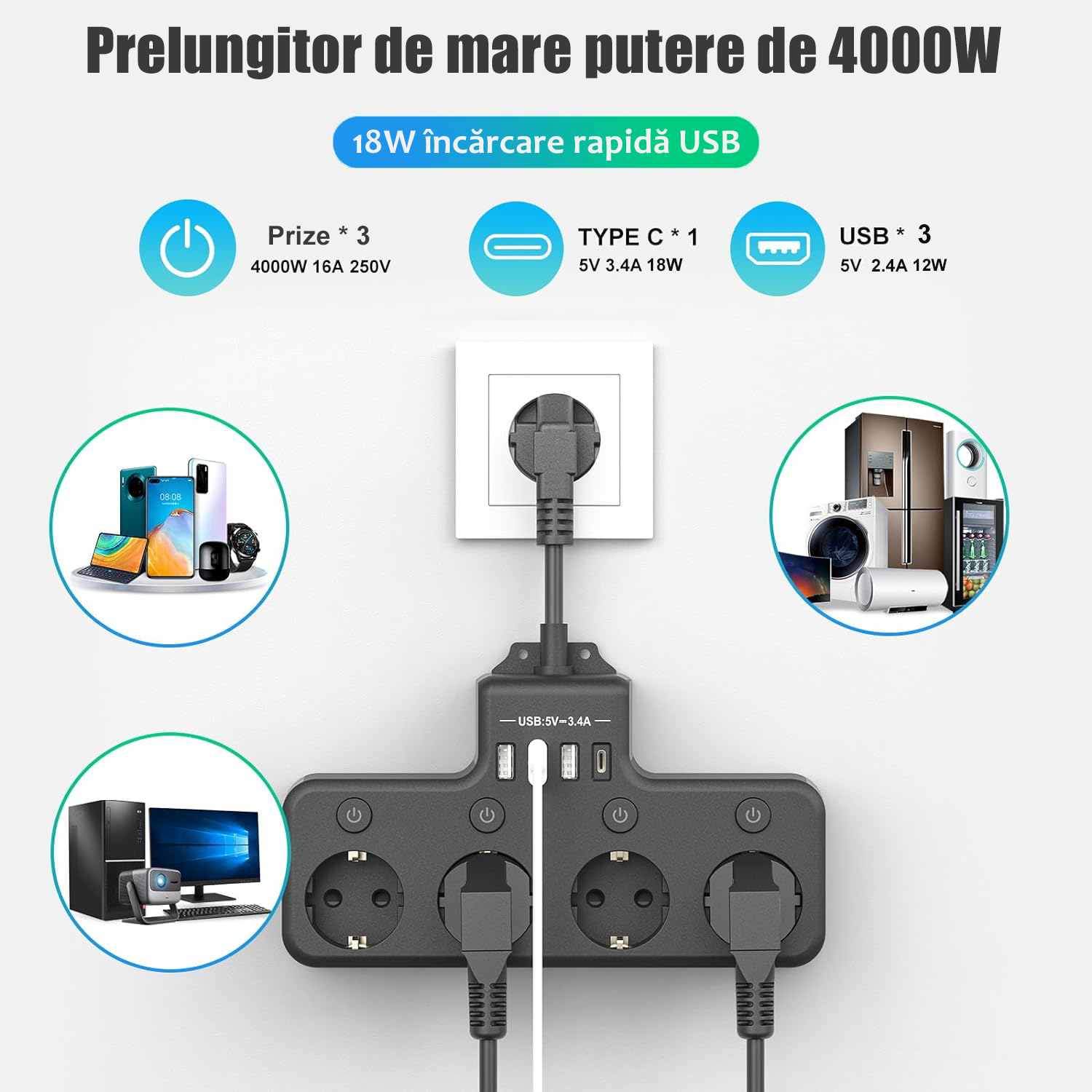 【Gama larga de utilizari】 Designul sigur si eficient poate fi aplicat in diferite locuri, cum ar fi case, hoteluri, birouri etc., satisfacand nevoile unei varietati de aparate electrice si mai multor persoane.