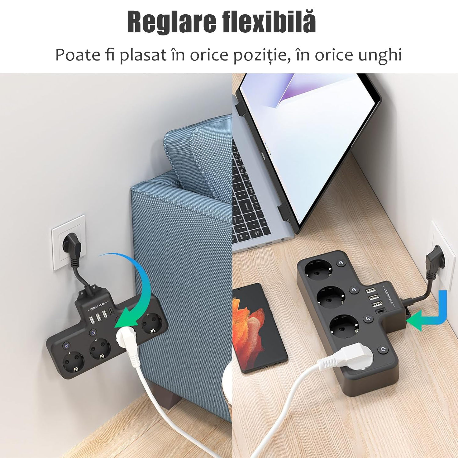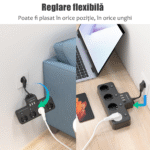 【Ajustare flexibila】 Aceasta prelungitor poate fi reglata in orice unghi, ceea ce face convenabil incarcarea aparatelor electrice in diferite directii.