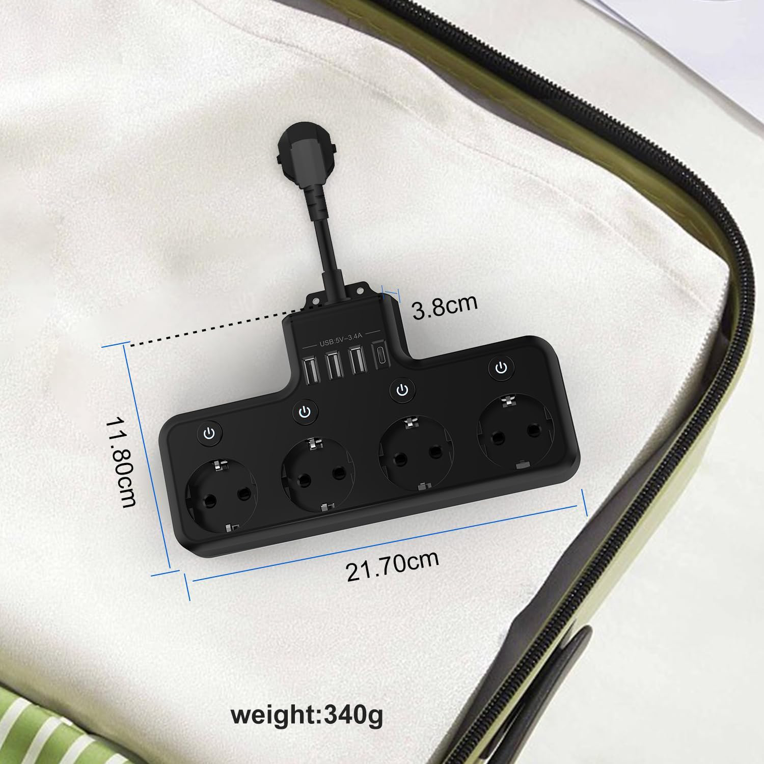 【Compact si portabil】 Dimensiunea benzii de priza este de 21,7 * 11,8 * 3,8, care este usor de transportat atunci cand calatoriti si incarcati toate dispozitivele oricand si oriunde.