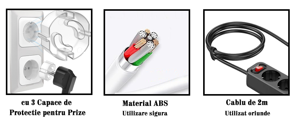 | Vine cu 3 capace de protectie a prizelor: Prelungitor este echipat cu 3 capace de protectie a prizelor pentru utilizare mai sigura si reduce bataia de cap a pericolelor de incarcare.