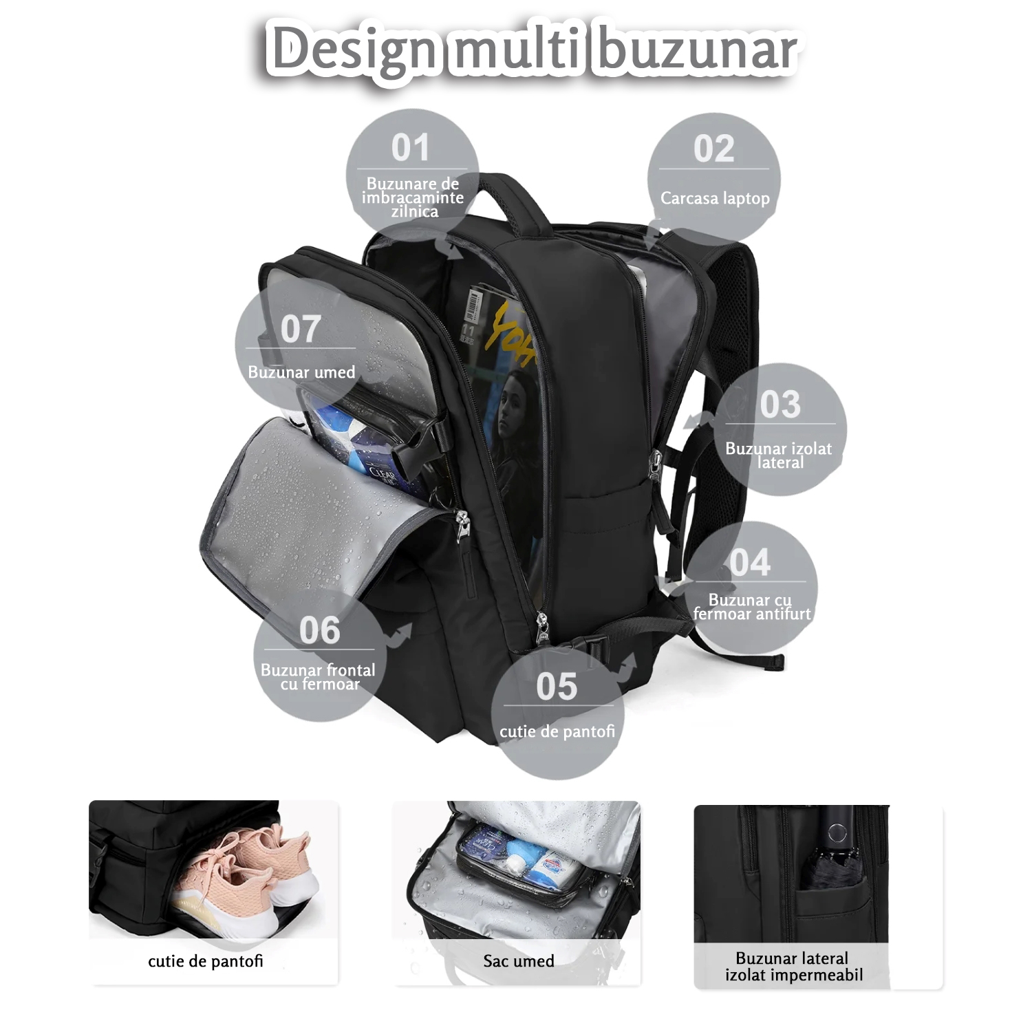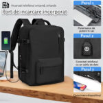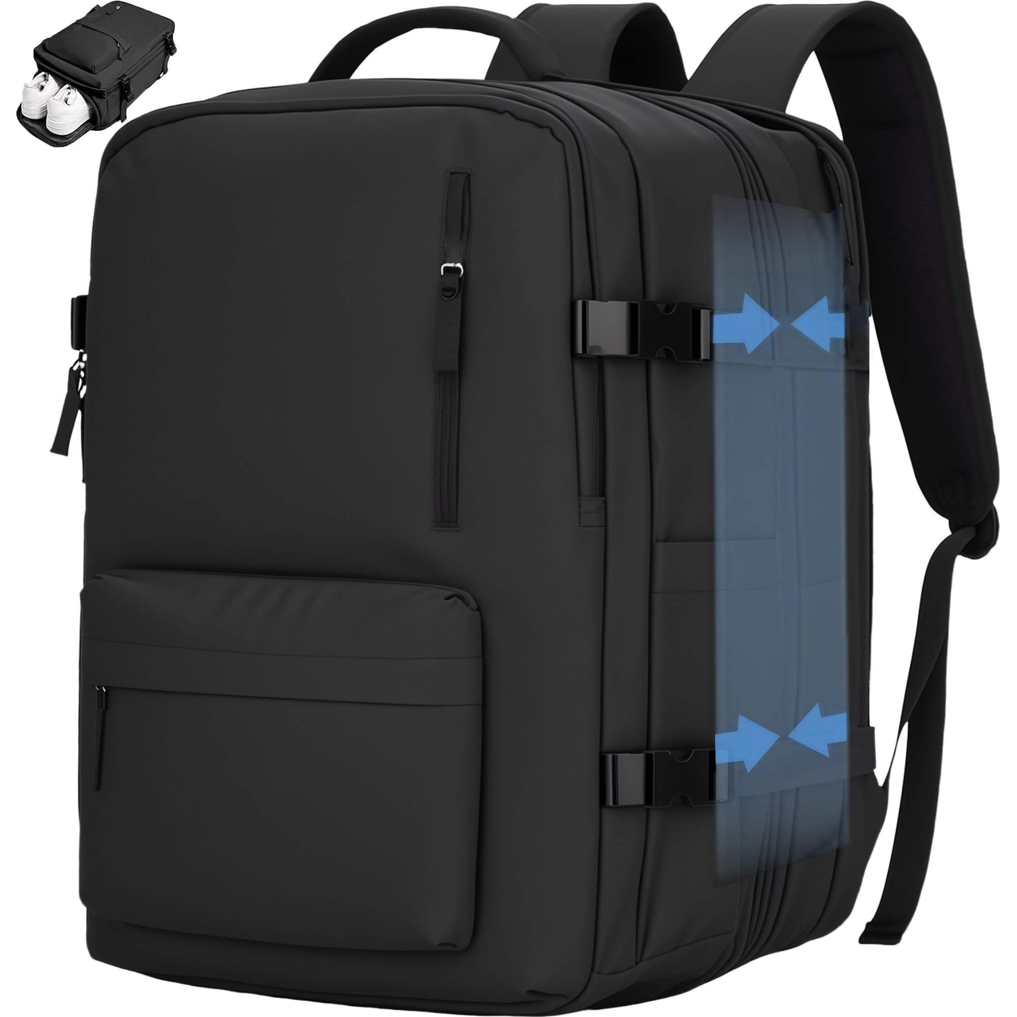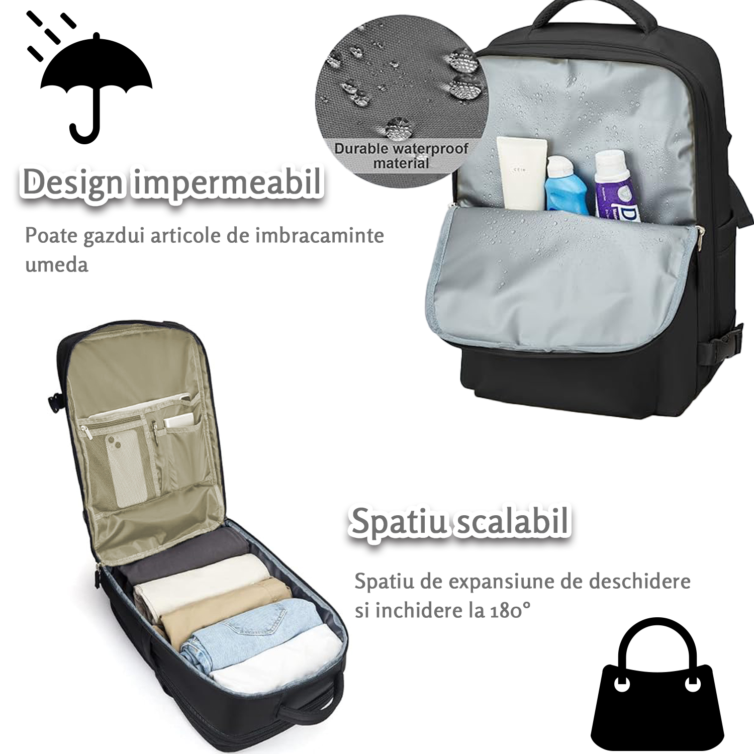 Rucsac de Voiaj, BYONDSELF®, pentru Avion, Extensibil 36-42L, Impermeabil, Deschidere la 180 de Grade, cu Compartiment pentru Laptop de 16 Inch/Compartiment pentru Pantofi, pentru Barbati si Femei, 31×22×47cm