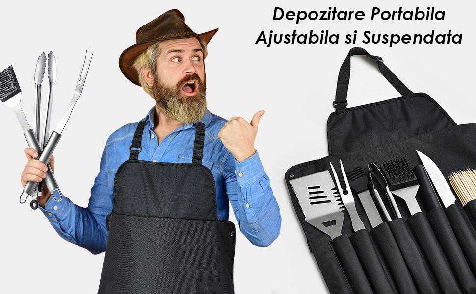 Acest set ustensile pentru gratar portabil si practic este compatibil cu majoritatea gratarelor si potrivit pentru gatit atat in interior, cat si in exterior. Fie ca il folosesti in bucatarie, in curte sau in camping, acest set este un cadou ideal pentru barbati si femei. Este perfect pentru ocazii speciale precum Ziua Tatalui, aniversari, Craciun sau alte sarbatori importante.